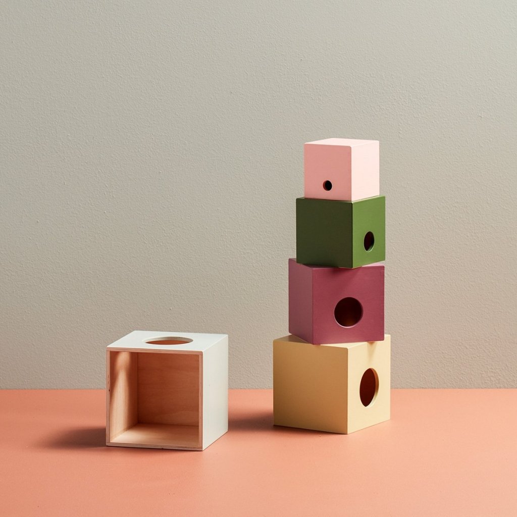 Dřevěné kostky v krásných pastelových barvách je možné stavět na sebe i vkládat do sebe, řadit je podle velikosti, vkládat do nich jiné hračky apod. Hraní s kostkami pomáhá rozvíjet jemnou motoriku i jednotlivé smysly dítěte a jeho logické myšlení. Kostky patří do série hraček Edvin, inspirované skandinávskou přírodou a zvířaty, které v ní žijí.
