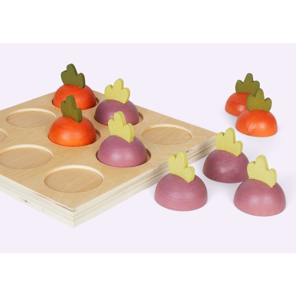 Klasické piškvorky v originálním dřevěném provedení s hracími kameny ve formě dvou druhů zeleniny. Praktický textilní sáček usnadňuje uklízení i přenášení hračky. Piškvorky jsou součástí ucelené kolekce dřevěných hraček Kids Concept Bistro.