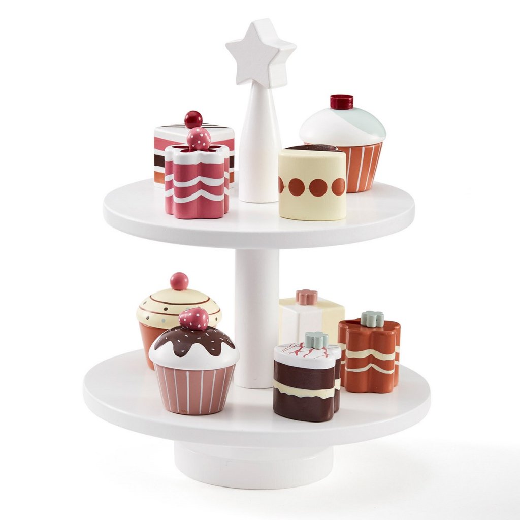 Patrový stojan na cukroví v dřevěném provedení umožňuje servírovat sladkosti v dětském bistru stylově. Ideální doplněk k dřevěným zákuskům z kolekce dřevěných hraček Kids Concept Bistro (zákusky se prodávají samostatně).