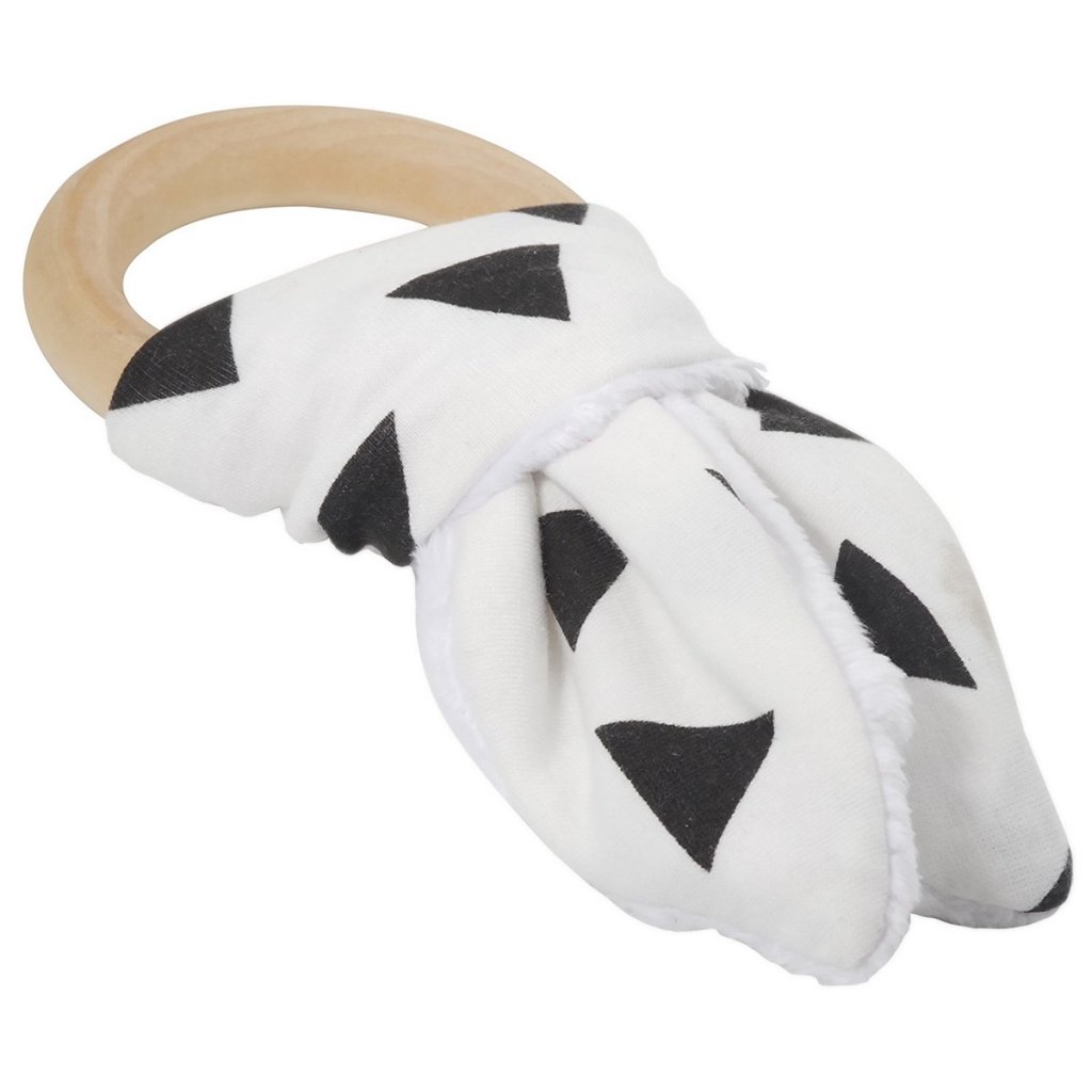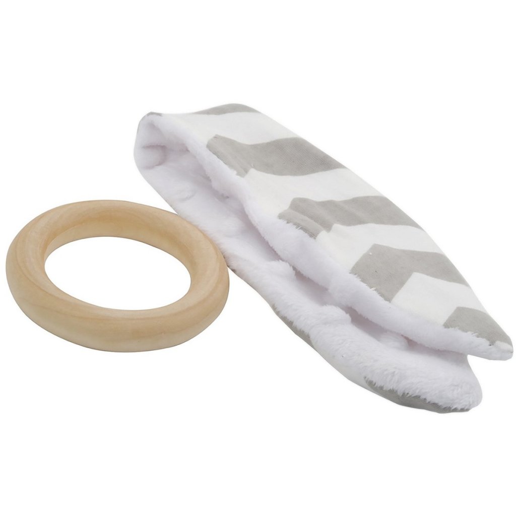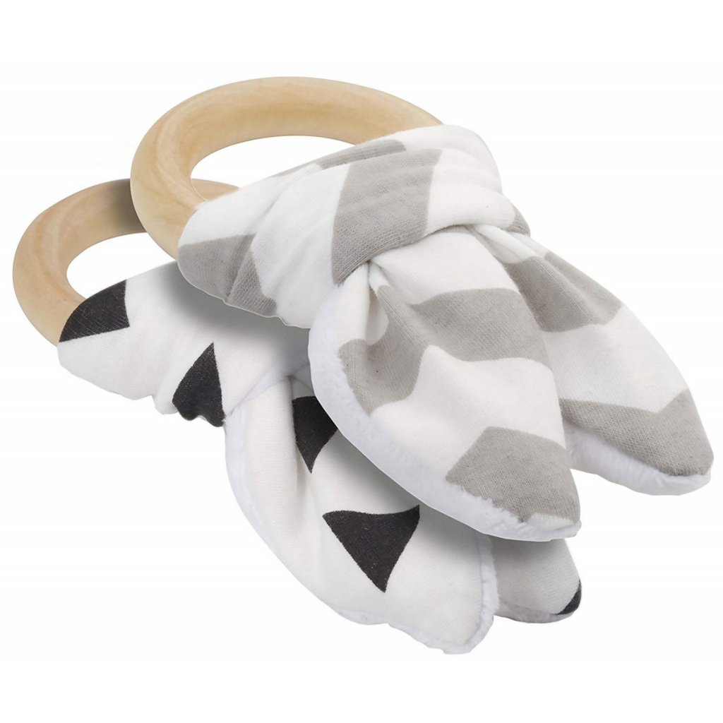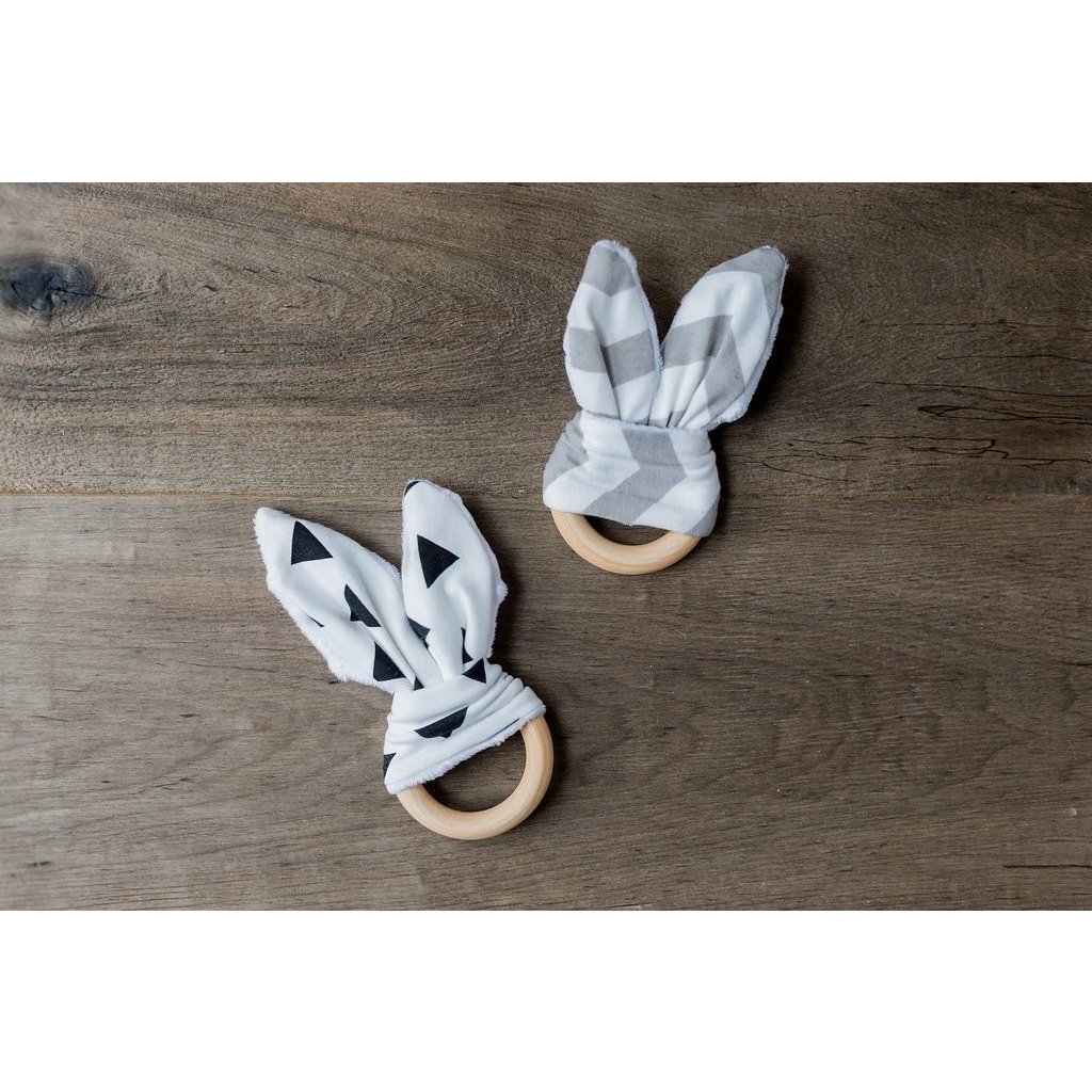 Sada dvou dřevěných kousátek s měkkými bavlněnými oušky, která šustí. Skvělá hračka pro rozvoj motoriky a úchopu a také k utěšení bolavých dásní při prořezávání zoubků. Pro výrobu byly použity materiály šetrné k životnímu prostředí neobsahující škodlivé látky. Tato hračka je vhodná pro děti od 6 měsíců.