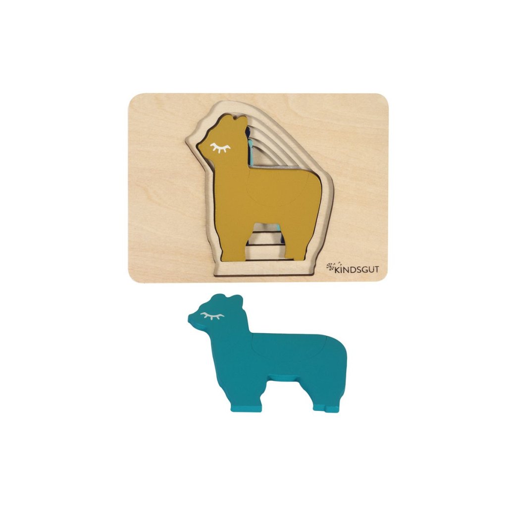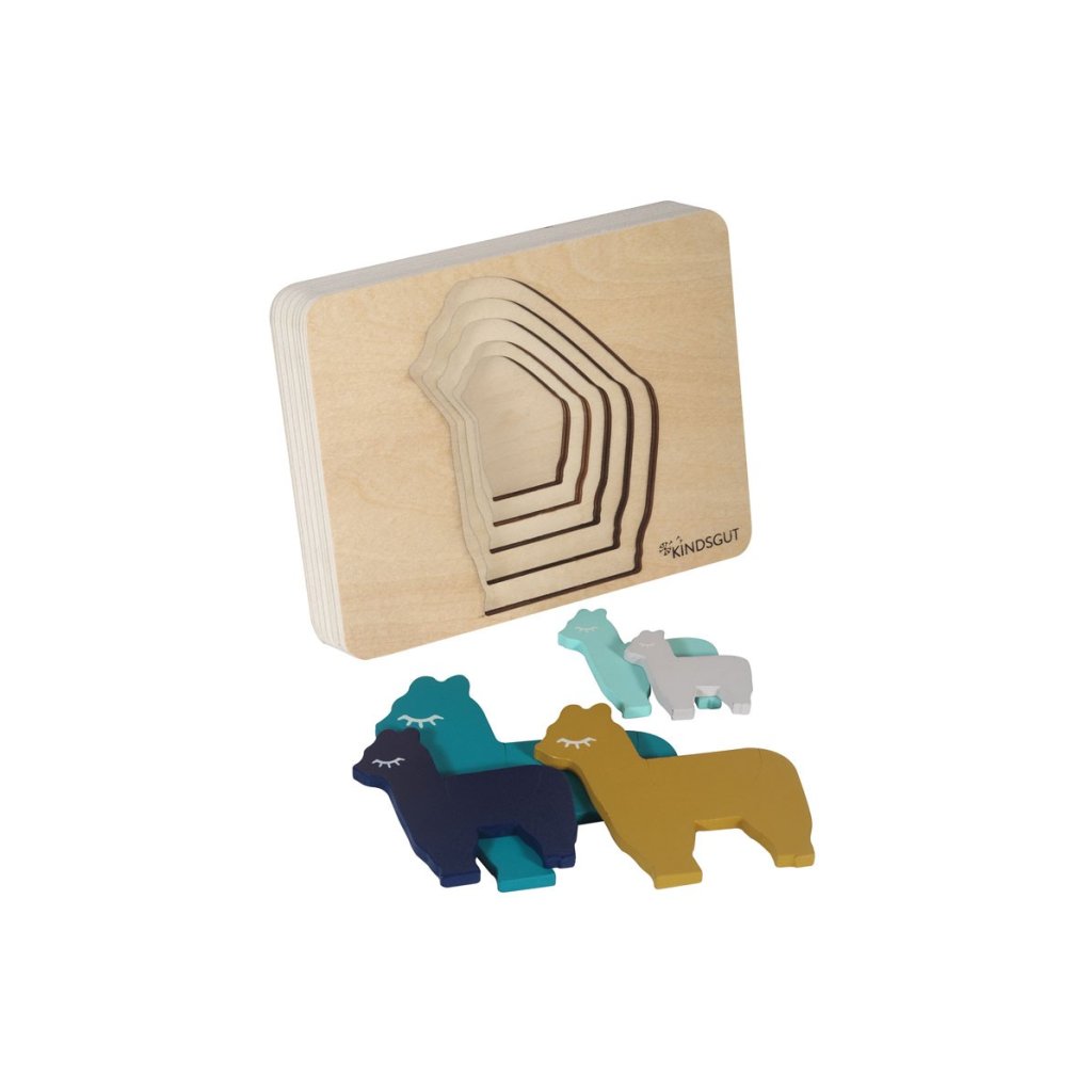 Nádherné dřevěné puzzle německé značky Kindsgut vaše děťátko nejen zabaví, ale také podpoří rozvoj jeho motorických dovedností a koordinace oko-ruka. Součástí je základní deska a pět různě velkých a barevných zvířátek, které lze do základní desky postupně naskládat. Pro výrobu byly použity materiály šetrné k životnímu prostředí neobsahující škodlivé látky. Puzzle jsou vhodné pro děti od 18 měsíců.