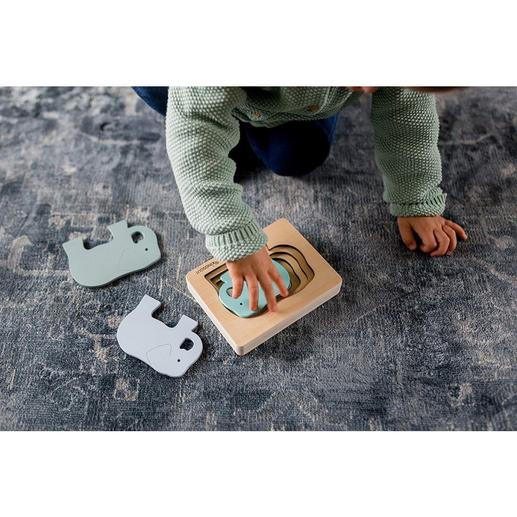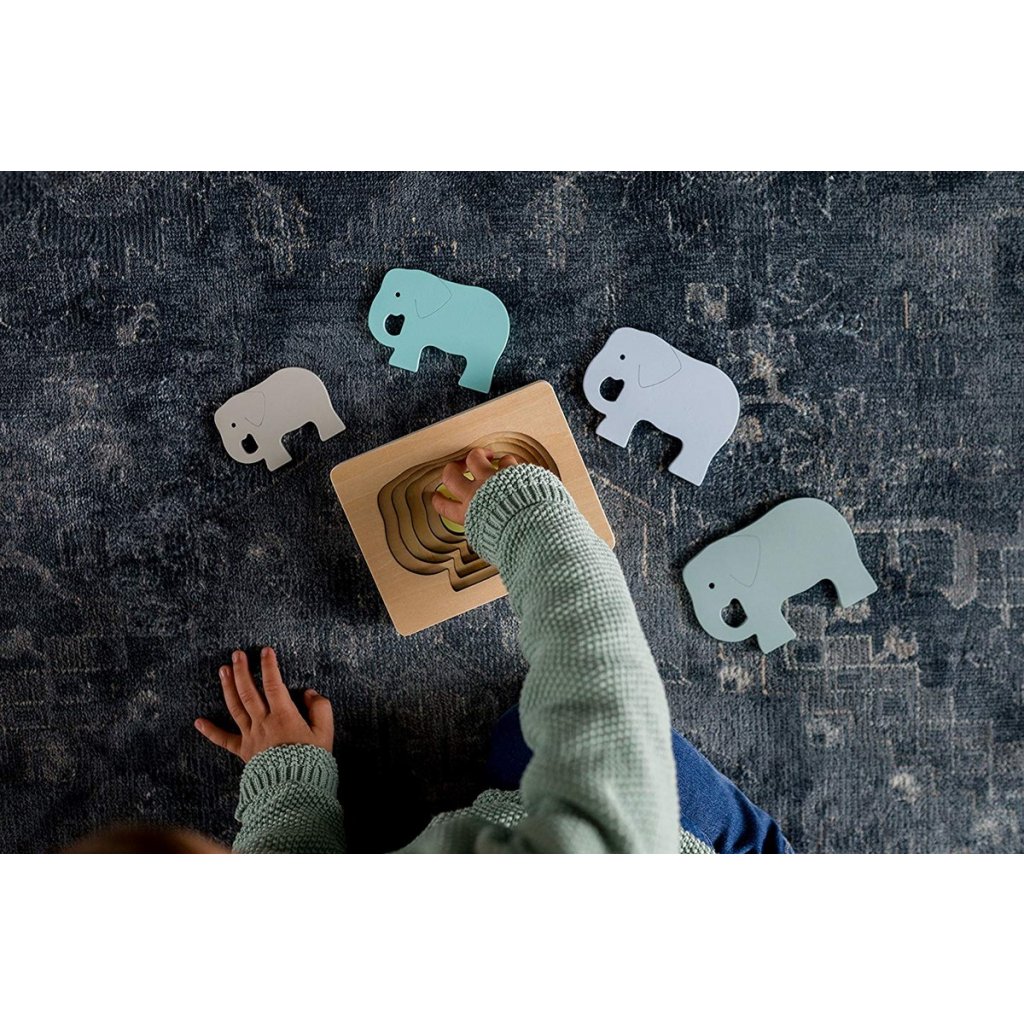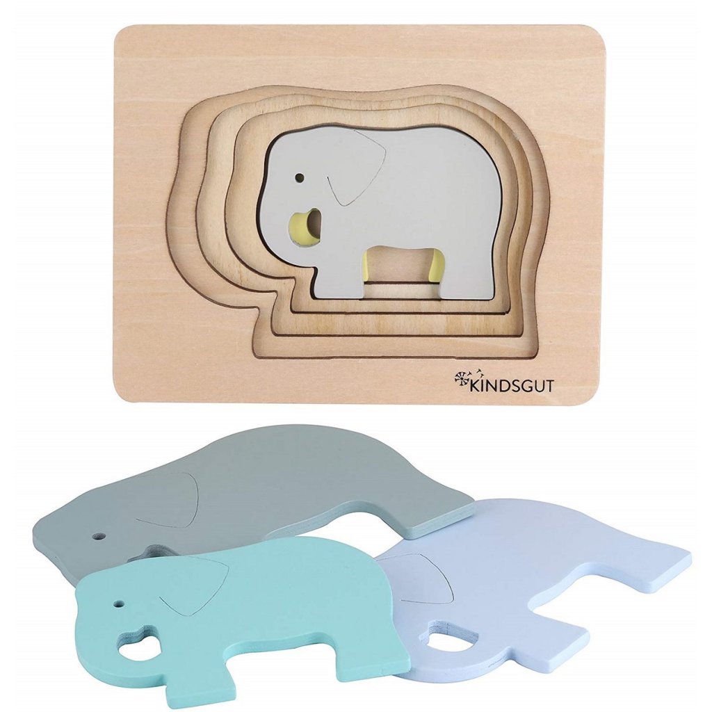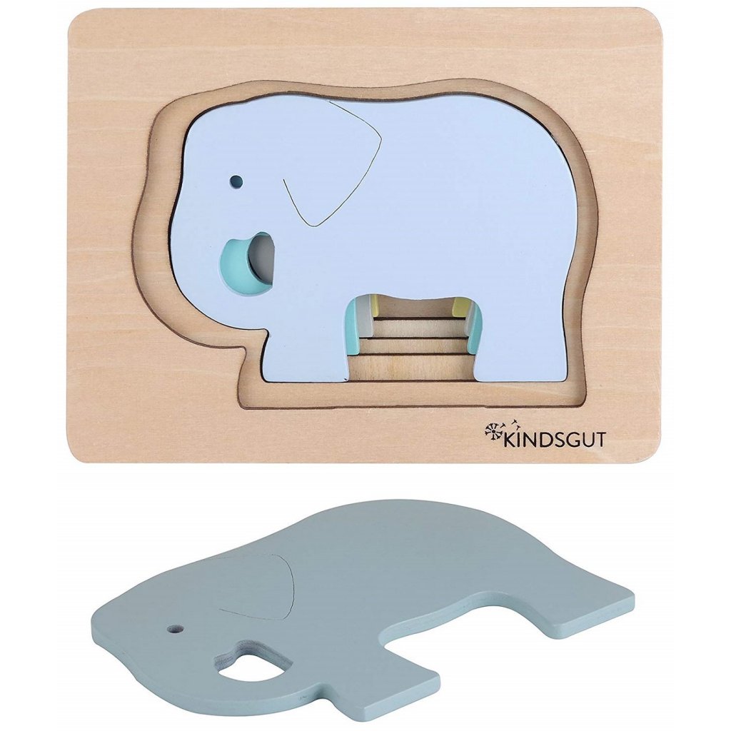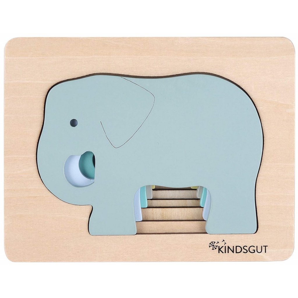 Nádherné dřevěné puzzle německé značky Kindsgut vaše děťátko nejen zabaví, ale také podpoří rozvoj jeho motorických dovedností a koordinace oko-ruka. Součástí je základní deska a pět různě velkých a barevných zvířátek, které lze do základní desky postupně naskládat. Pro výrobu byly použity materiály šetrné k životnímu prostředí neobsahující škodlivé látky. Puzzle jsou vhodné pro děti od 18 měsíců.