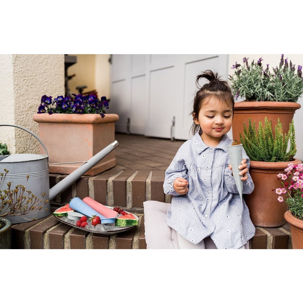Formičky na zmrzlinu Kindsgut jsou nutností pro každého, kdo se zmrzliny nemůže nabažit. S hezkými formami na zmrzlinu vyrobenými z ekologického silikonu si může každý fanoušek zmrzliny snadno připravit zmrzlinu a vychutnat si ji doma nebo na cestách. Jednoduše vložte do formiček šťávu, malé kousky ovoce nebo jogurt, přiklopte víkem a dejte formičky do mrazáku - domácí zmrzlinu si můžete vychutnat již po několika hodinách. Díky pružnosti silikonu lze zmrzlý led snadno vytlačit, takže je ideální i pro malé dětské ručičky. Před dalším použitím lze formičky na led opláchnout pod tekoucí vodou nebo dokonce umýt v myčce na nádobí.