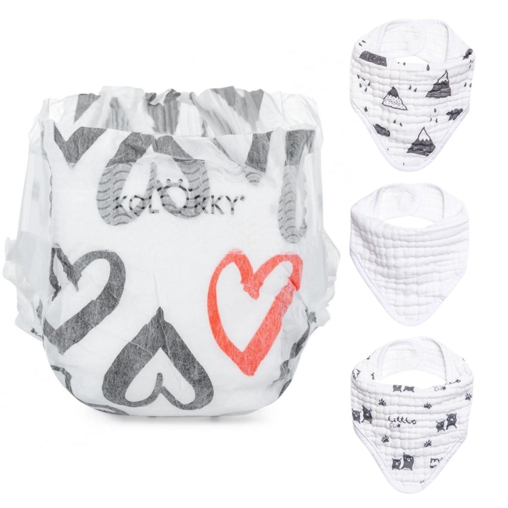 KOLORKY DAY Set Srdce Jednorázové eko plenky M (5 - 8 kg) 126 ks + Bryndák 3 ks Mountains