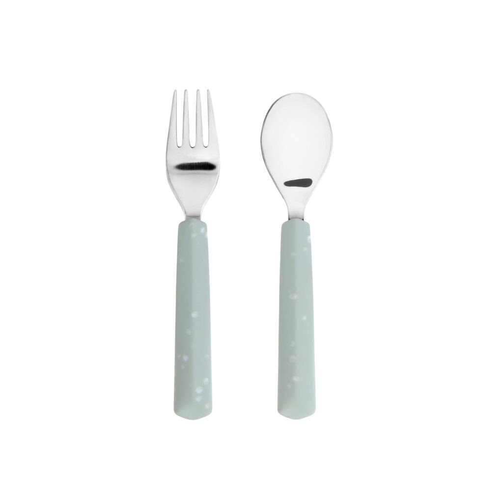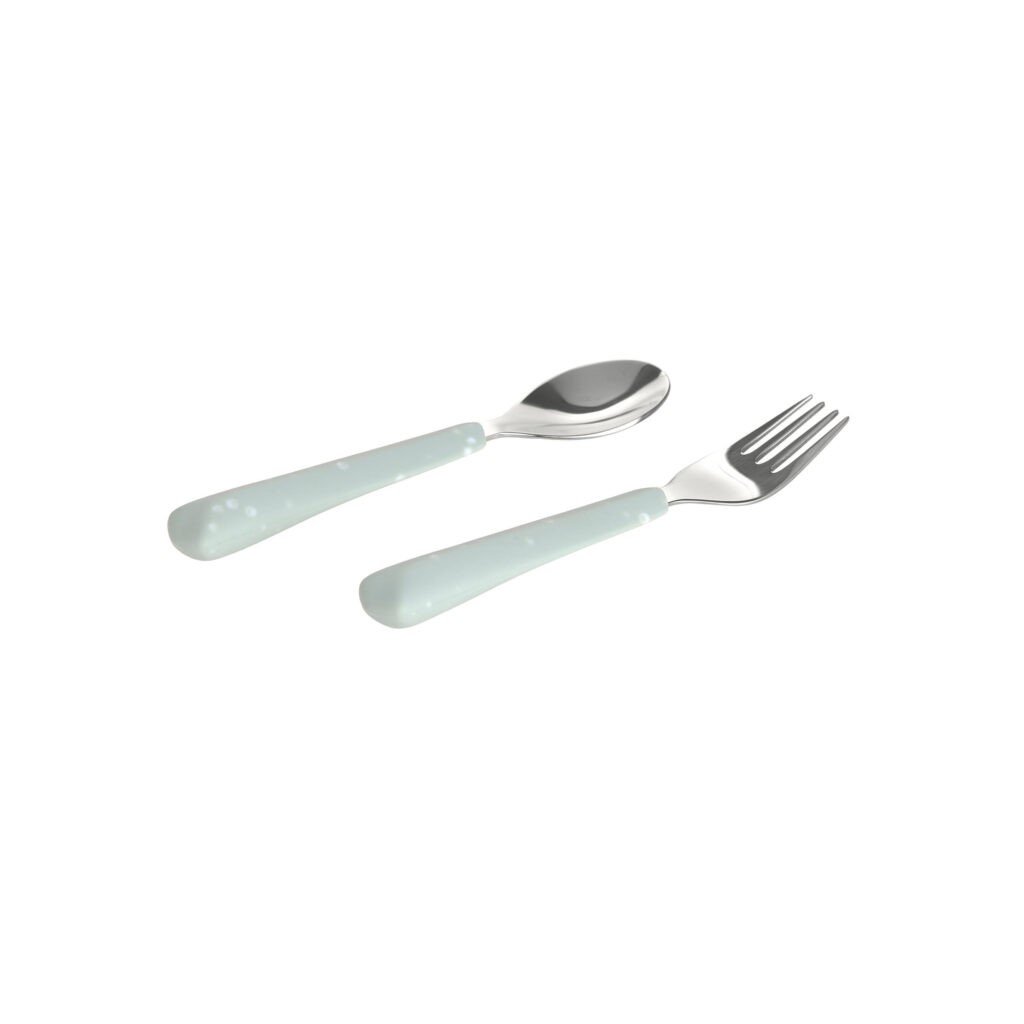 Dětský příbor se silikonovou rukojetí je skvělým pomocníkem při stolování a prvních pokusech vaší ratolesti se vlastnoručně nakrmit. Společně se samostatně dostupným skleněným jídelním setem s odnímatelnými silikonovými základnami jsou děti připraveny na všechna jídla.