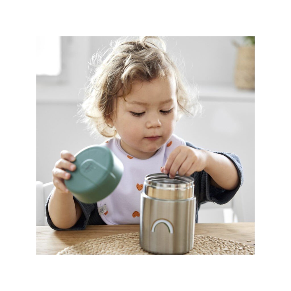 Termoska na jídlo udrží svačinku teplou a nebo studenou v závislosti na požadavku. Je vyrobena z vysoce kvalitní nerezové oceli, je nepropustná. Díky svému designu se hodí nejen na piknik do přírody ale i do víru velkoměsta.Termosku lze jednoduše umýt.Termoska nesmí být používána na přepravu a uchovávání karbonizovaných nápojů a ledových kostek. Nehodí se rovněž na uchovávání teplých mléčných výrobků. Výrobek není určen pro skladování skleněných lahví, protože to může vést k potenciálnímu poškození a kontaminaci.