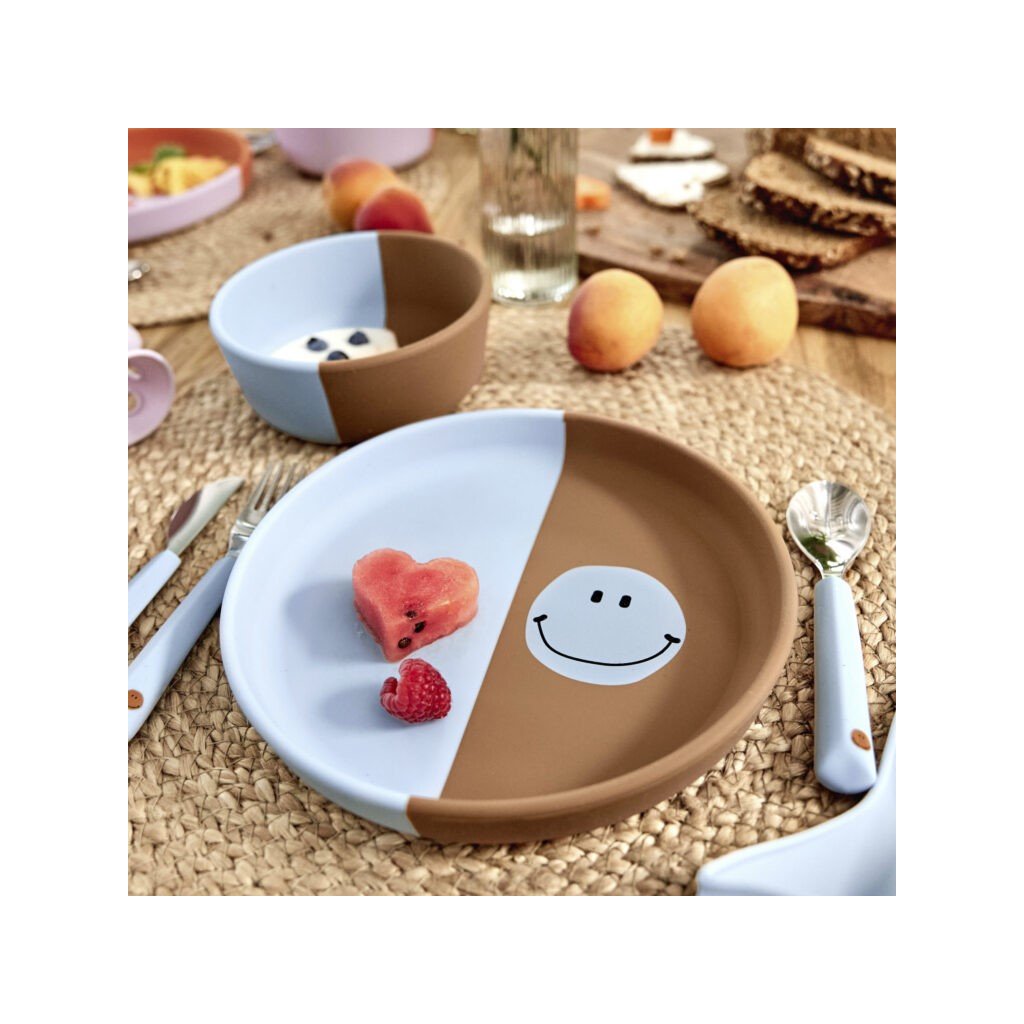 LÄSSIG Plate Silicone Happy Rascals Smile sky blue