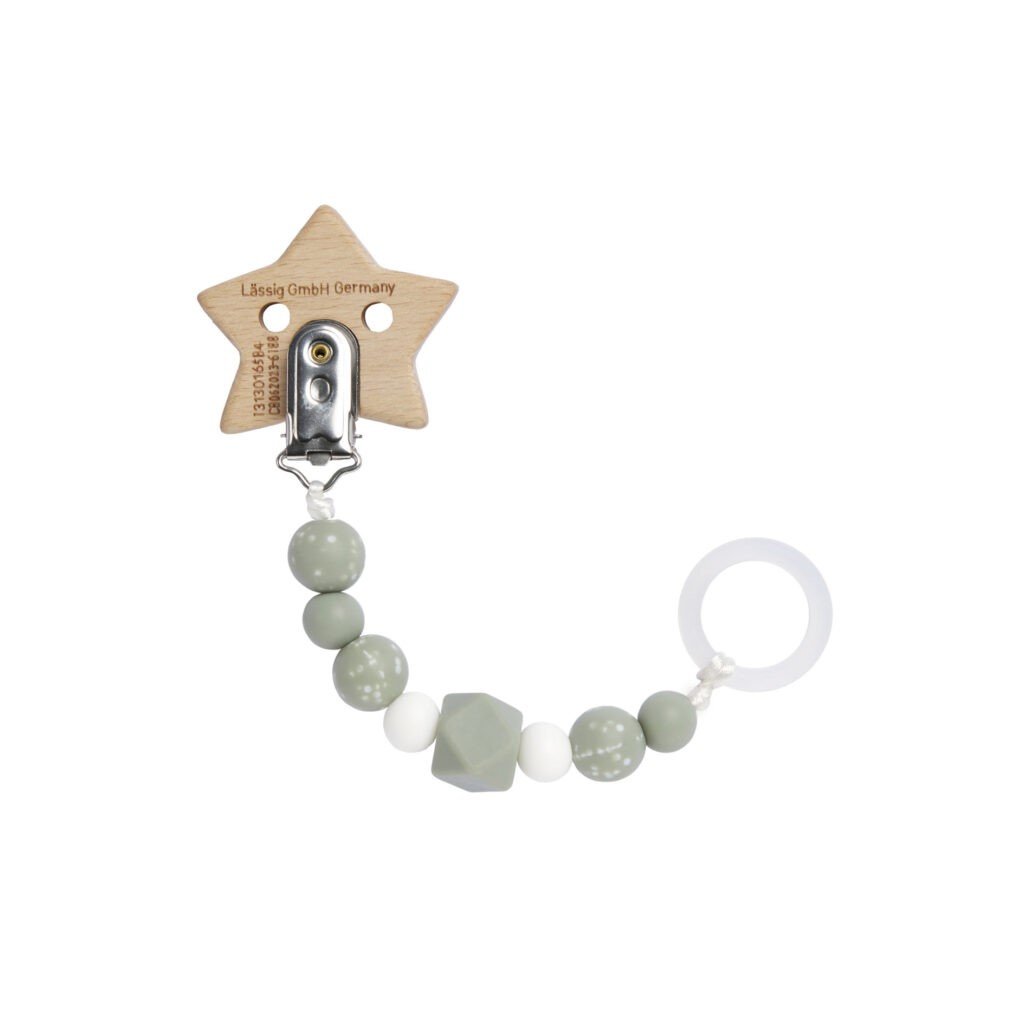 LÄSSIG Soother Holder Wood/Silicone Little Universe star olive