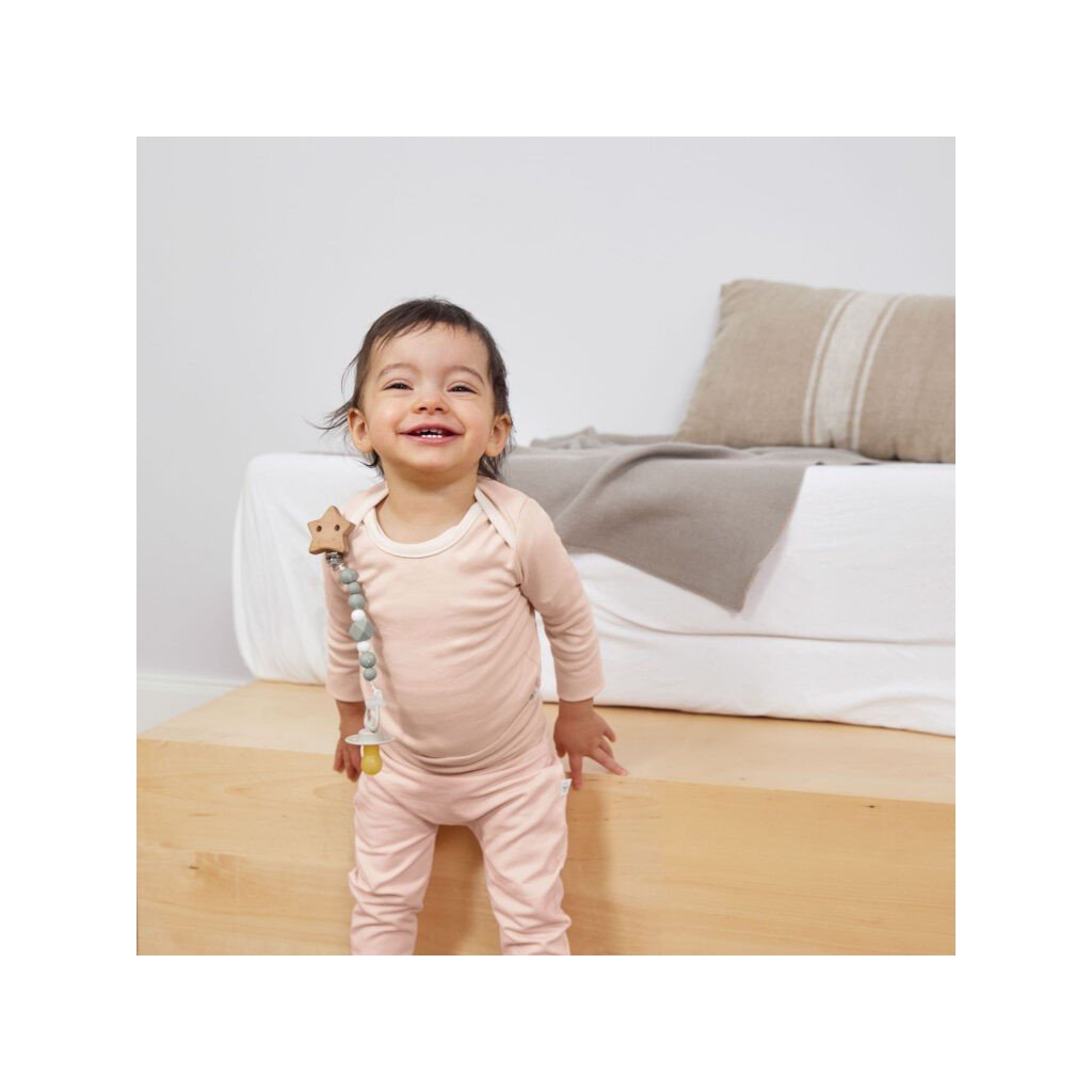 Soother Holder Wood/Silicone Little Universe je jedním z dalších výrobků značky Lässig, vyznačující se vysokou kvalitou materiálů, jejich zpracováním a svojí funkčností. Díky řetízku na dudlík s klipem už nikdy žádný dudlík neztratíte! Skládá se z dřevěné části představující nebeský motiv s kovovým klipem a dále barevným silikonovým řetízkem a kroužkem pro uchycení dudlíku. Díky flexibilnímu silikonovému kroužku lze řetízek připojit k dudlíkům s kroužkem i bez kroužku. Před každým použitím pečlivě zkontrolujte funkčnost a při první známce poškození zahoďte. Nepřipevňovat na šňůrky, stuhy, tkaničky nebo volné části oblečení!!! Hrozí uškrcení dítěte. Výrobek je vhodný pro děti od narození.