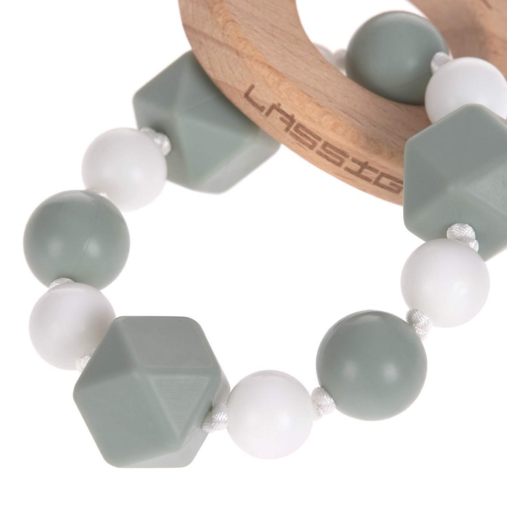 Teether Bracelet Wood - Silicone, Little Chums je jedním z dalších výrobků značky Lässig, vyznačujícím se vysokou kvalitou materiálů, jejich zpracováním a svojí funkčností. Jedná se o perfektní kombinaci kousátka a hračky, vyrobené v kombinaci dřeva a silikonu. Velikost a materiál jsou ideálně navrženy do rukou malých průzkumníků a podporují stimulaci jednotlivých smyslů dítěte. Hračka je složena ze dvou navzájem propojených částí. Dřevěná část ve tvaru hlavy zvířátka s vyčnívajícími oušky i silikonová část tvořená z barevných kuliček přitahují pozornost dítěte. Při zvednutí hračky do oblasti očí je stimulována koordinace rukou a zraku dítěte, a to se tak učí uchopovat věci a koordinovat své motorické dovednosti. Kousátko ve tvaru zvířátka s vyčnívajícími elementy má zklidňující účinky na dásně a pomáhá redukovat bolest v době prořezávání zoubků. Zklidňující účinek je možné zvýšit vložením kousátka do ledničky. Výrobek je vhodný pro děti od narození.