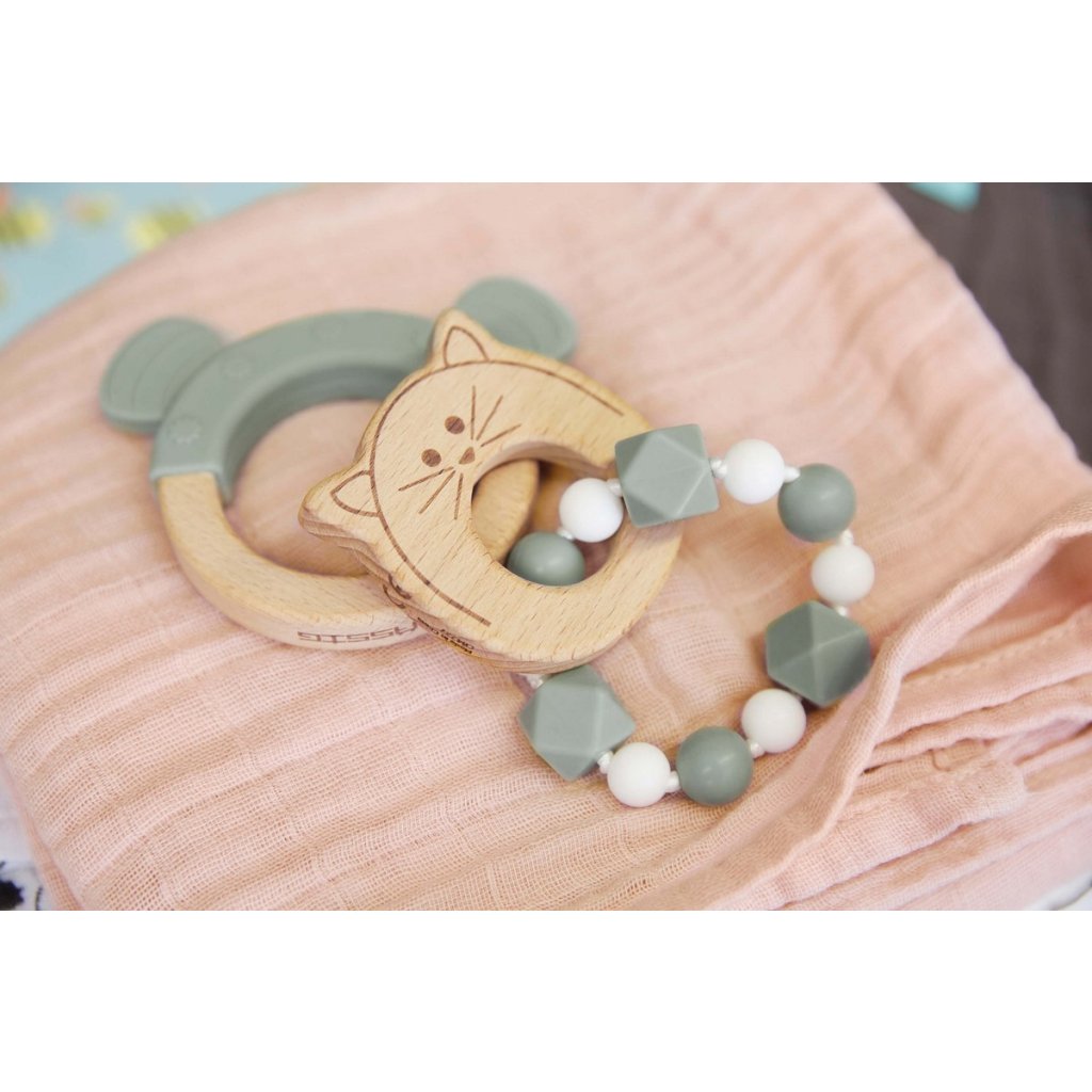 LÄSSIG Teether Bracelet Wood/Silicone Little Chums Cat