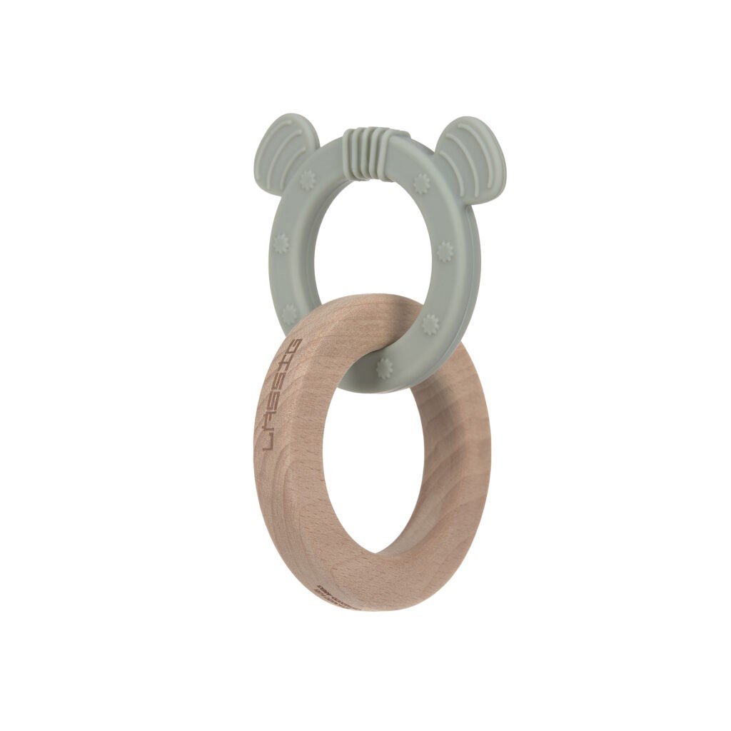 LÄSSIG Teether Ring 2in1 Wood/Silikone Little Chums cat