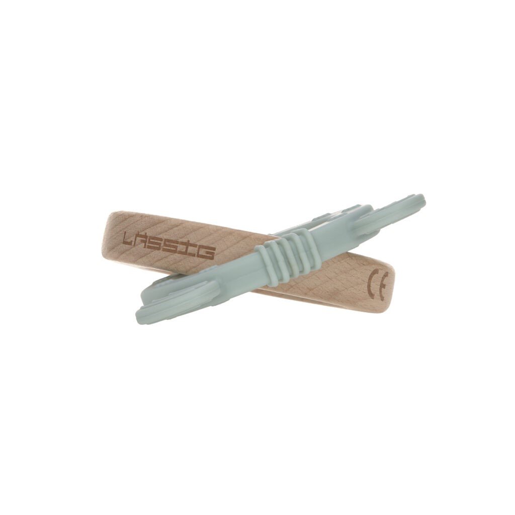 Teether Bracelet Wood - Silicone, Little Chums je jedním z dalších výrobků značky Lässig, vyznačujícím se vysokou kvalitou materiálů, jejich zpracováním a svojí funkčností. Jedná se o perfektní kombinaci kousátka a hračky, vyrobené v kombinaci dřeva a silikonu. Velikost a materiál jsou ideálně navrženy do rukou malých průzkumníků a podporují stimulaci jednotlivých smyslů dítěte. Hračka je složena ze dvou navzájem propojených částí. Při zvednutí hračky do oblasti očí je stimulována koordinace rukou a zraku dítěte, a to se tak učí uchopovat věci a koordinovat své motorické dovednosti. Zároveň jeho pozornost přitahují dvě různé barvy a dva materiály hračky. Kousátko ve tvaru dvou propojených kroužků s vyčnívajícími elementy má zklidňující účinky na dásně a pomáhá redukovat bolest v době prořezávání zoubků. Zklidňující účinek je možné zvýšit vložením kousátka do ledničky. Výrobek je vhodný pro děti od narození.