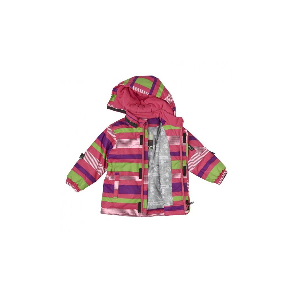 Tato bunda je určená všem holčičkám, které si rády hrají ve sněhu. Je totiž 100% vodě i větru vzdorná, čímž dokáže udržet teplo a sucho. Navíc je i prodyšná. Vnitřní části bundy, konkrétně kapuce, oblast krku, kapsy a otvory rukávů, jsou podšity jemným hřejivým fleecem. Fleecový je také chránič na jezdce zipu. V kapuci je zabudován elastický pásek pro optimální přizpůsobení. Kapuci lze v případě potřeby odejmout. Podél vnitřní i vnější strany zipu se nachází ochranný pruh látky proti větru. Na rukávech bundy jsou spony, na které lze snadno přichytit rukavice. Při zatažení za rukavici se přezka z bezpečnostních důvodů uvolní. Na bundě jsou našity reflexní bezpečnostní prvky.