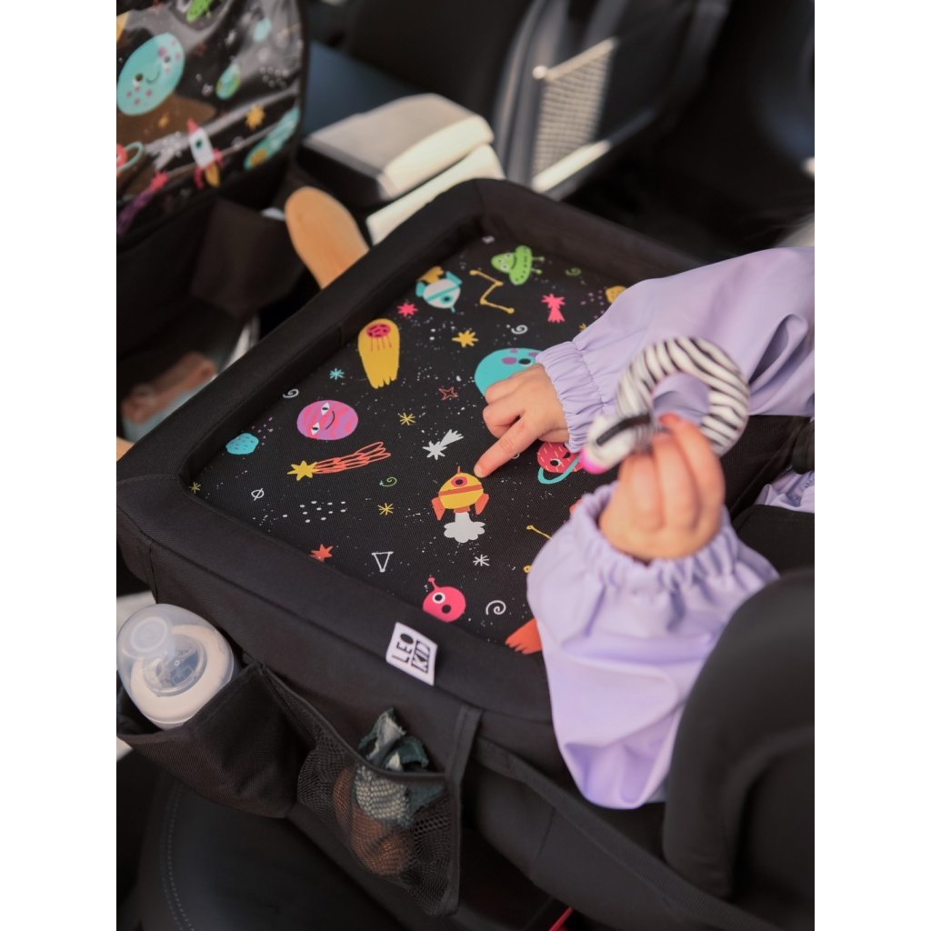 Pultík k autosedačce je skvělý pomocník na výlety autem. Idealní pro hraní a občerstvení při dlouhých cestách. Velikost je univerzální a pásy na připevnění jsou nastavitelné, tudíž sedí na většinu dětských autosedaček. Pultík je vyroben z pěnového materiálu bez pevných vložek a je tak pro dítě naprosto bezpečný. Je vybaven vyvýšenými hranami, aby byly věci v bezpečí. Na boku má dvě kapsy: jednu na pití a druhou na uložení toho nejdůležitějšího.