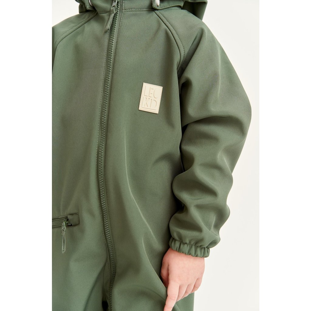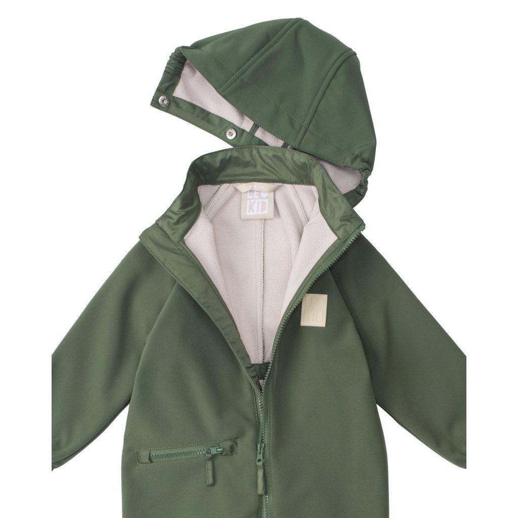Softshellový overal Leokid je vhodný pro děti ve věku od 9 měsíců do 5 let (různé velikosti). Overal má stupeň tepelné izolace od +5 °C do +15 °C a umožní vašemu dítěti příjemné procházky na jaře, na podzim i v chladném létě. Softshellová kombinéza je vyrobena z technologicky vyspělé tkaniny potažené polyuretanem s voděodpudivou úpravou a teplým a měkkým fleecovým vnitřkem. Díky měkké látce se kombinéza dobře natahuje, což zajišťuje volnost pohybu a pohodlí. Dlouhý zip uprostřed usnadňuje oblékání overalu. Elastické manžety obepínají zápěstí a zabraňují pronikání studeného vzduchu a vody do rukávů. Overal lze pomocí odnímatelných silikonových pásků připevnit k botám dítěte. Softshellová kombinéza je vyrobena z oděruvzdorné tkaniny s vodoodpudivou úpravou 8000 mm a paropropustnou membránou 3000 g/m2 a bude nepostradatelná v deštivém počasí.