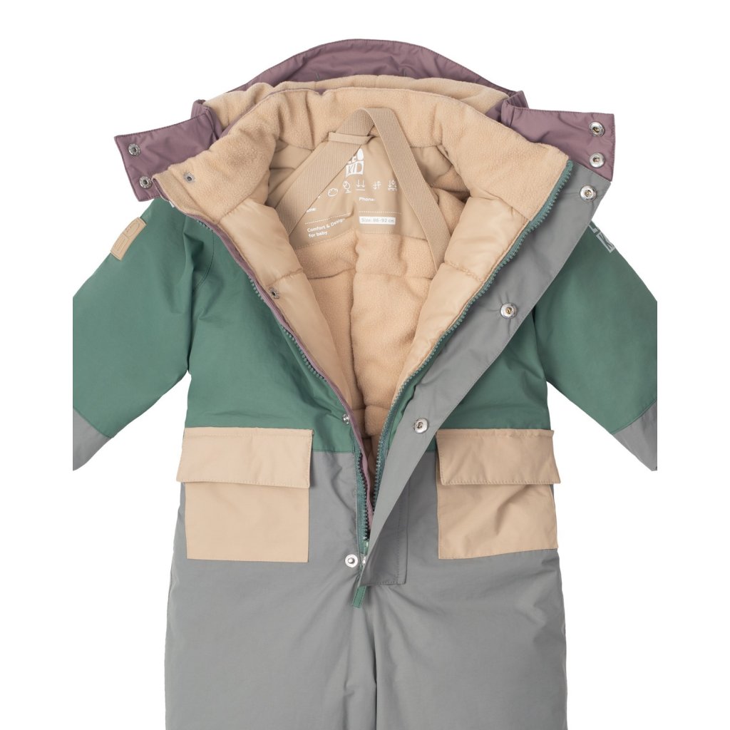 Kombinéza Leokid je vhodná na zimní procházky. Udržuje teplo a chrání dítě před větrem, deštěm a sněhem. Overal je vyroben z tkaniny odolné proti opotřebení s vodoodpudivou impregnací. Díky ultramodernímu izolačnímu materiálu udržuje teplo i při -25° C. Všechny švy kombinézy jsou lemované a odpuzují vodu. Díky manžetám na rukávech a nohavicích se není třeba obávat průniku studeného vzduchu, odnímatelné elastické gumičky umožňují připevnit nohavice k obuvi dítěte. Odnímatelná kapuce na patentky zaručuje bezpečnost a chrání dítě před silným větrem během procházky.