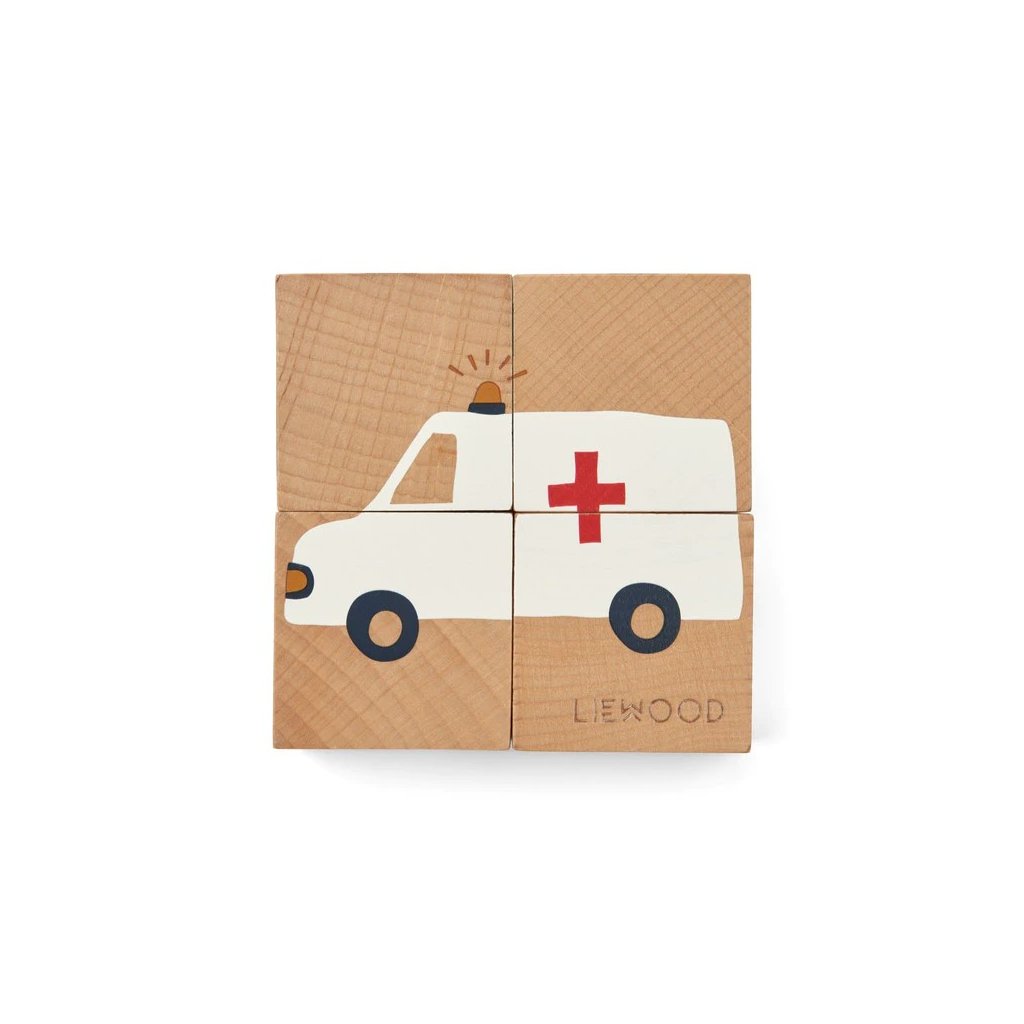 LIEWOOD Aage Dřevěné puzzle kostky Vehicle/Nature