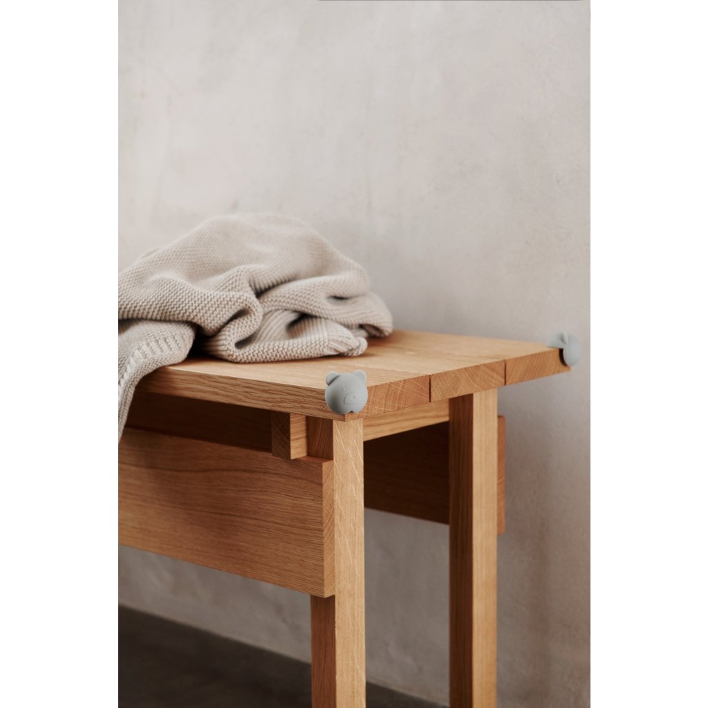 Ochrany rohů ve tvaru medvěda. Chrání děti před ostrými hranami uvnitř domu. Ochrany mají samolepící podložky a jsou flexibilní a odolné.