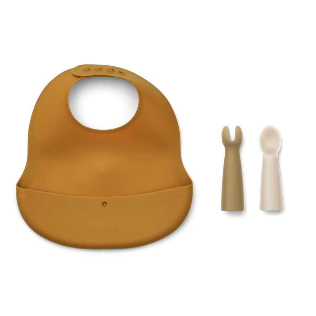 Perfektní sada na cesty se vším, co dítě potřebuje. Sada obsahuje bryndáček Ember a sadu dětských příborů Terra.