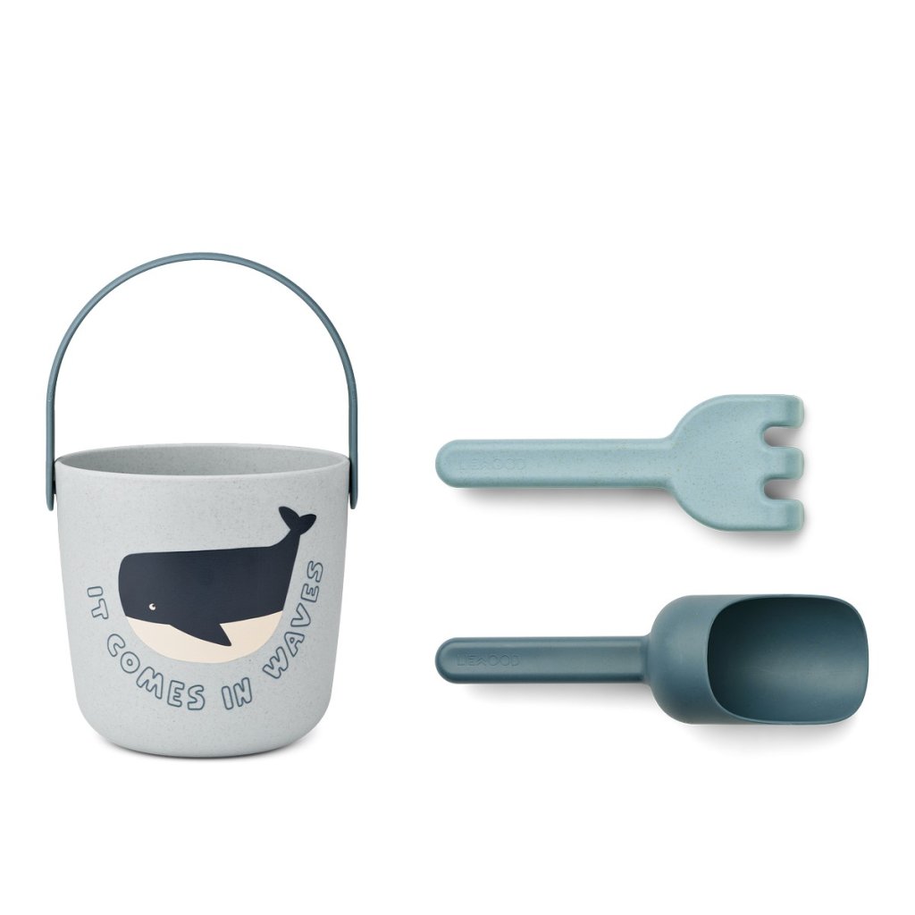 Sada hraček na písek zaručuje hodiny zábavy. Sada obsahuje kbelík s násadou, lopatku a hrábě.
