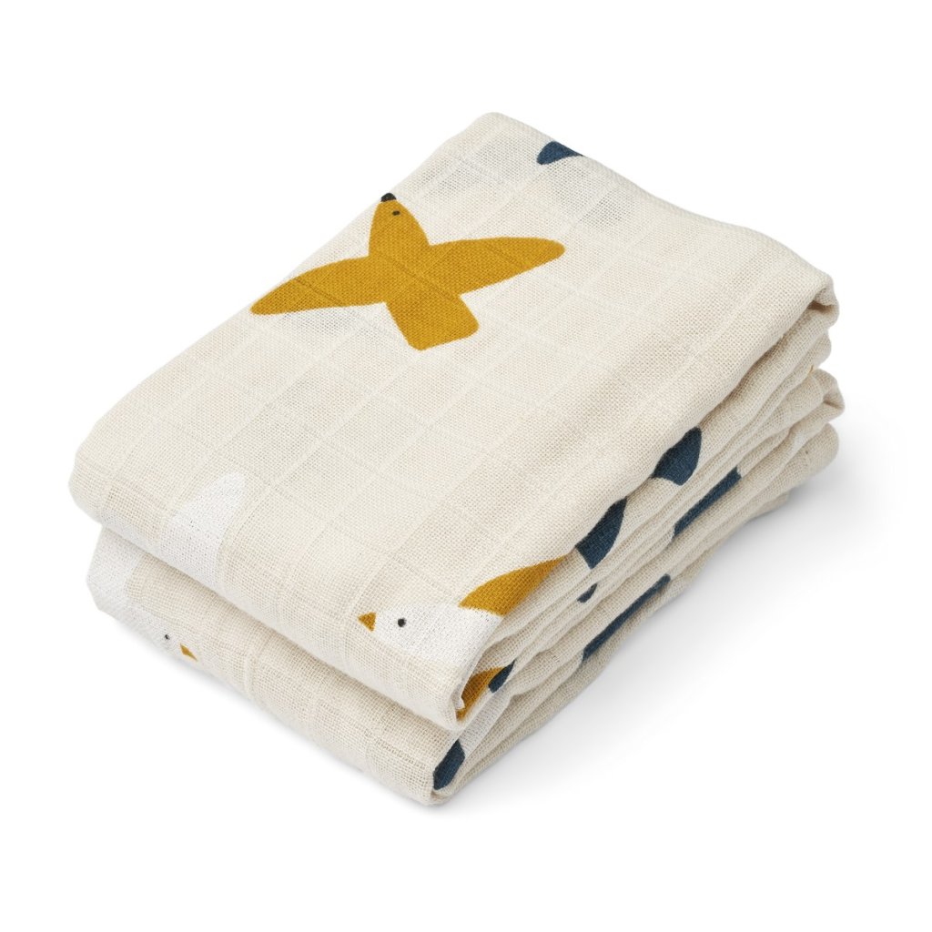 LIEWOOD Lewis Mušelinové plenky 2 ks Birds/Sea Shell