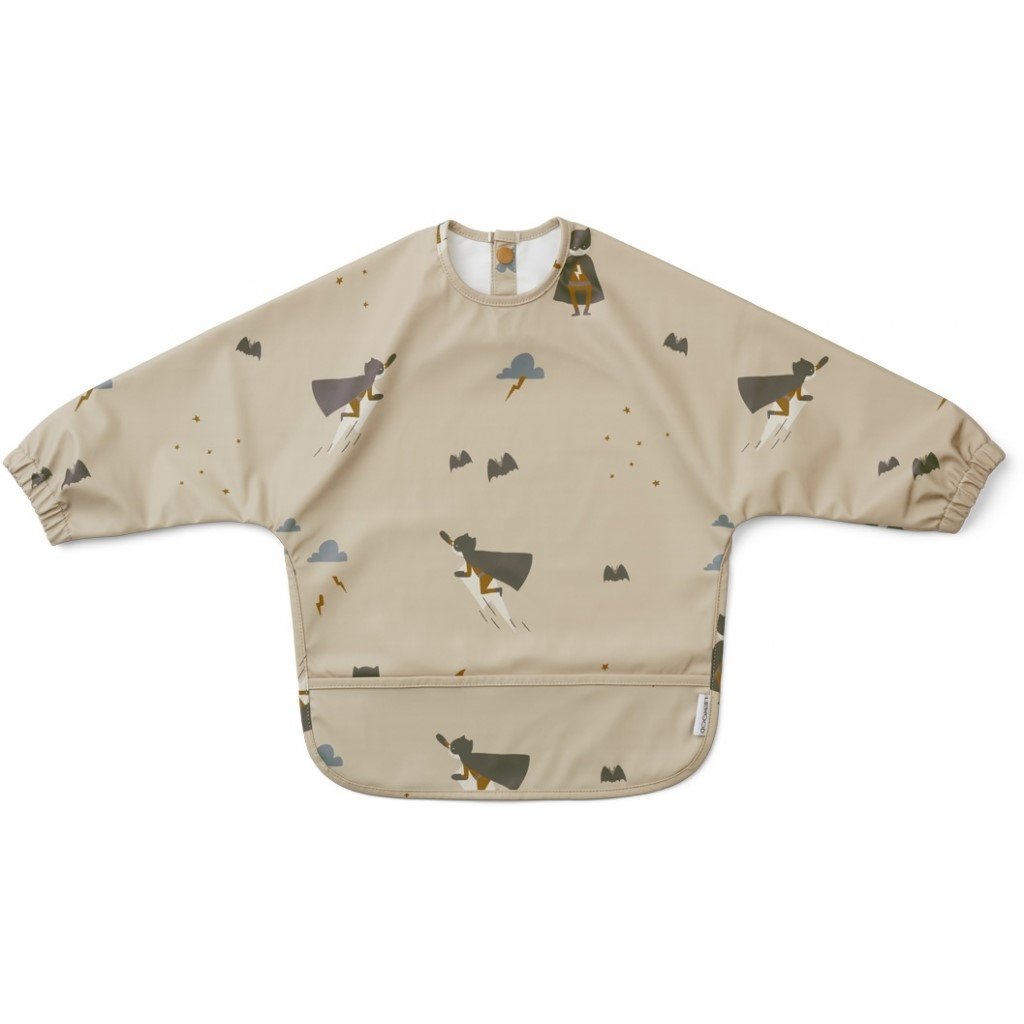 Roztomilý, praktický a pohodlný bryndák s rukávy pro všechny malé jedlíky. Je vyroben z vodě odolného materiálu a má speciální kapsu, která zachytí zbytky padajícího jídla. Bryndák lze snadno otřít.