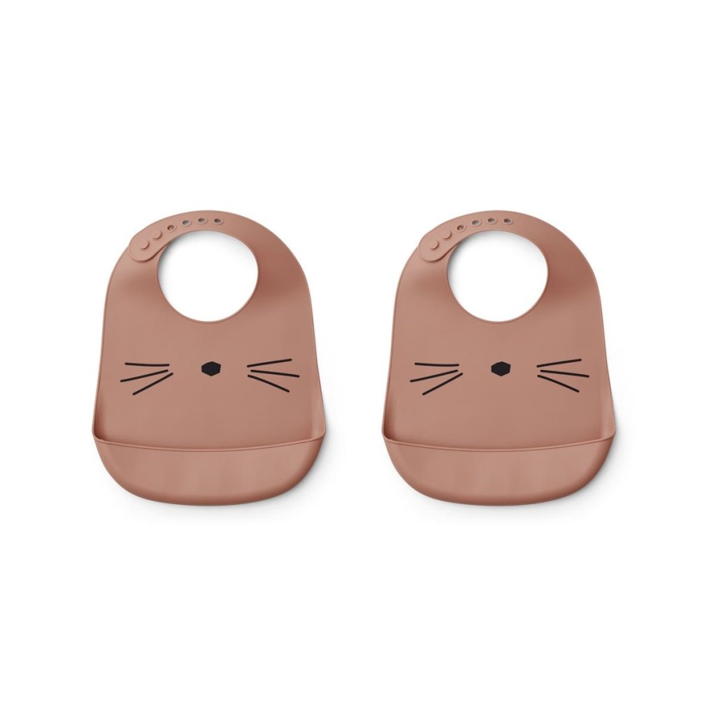 LIEWOOD Silikonový bryndák 2 ks Cat Dark Rose