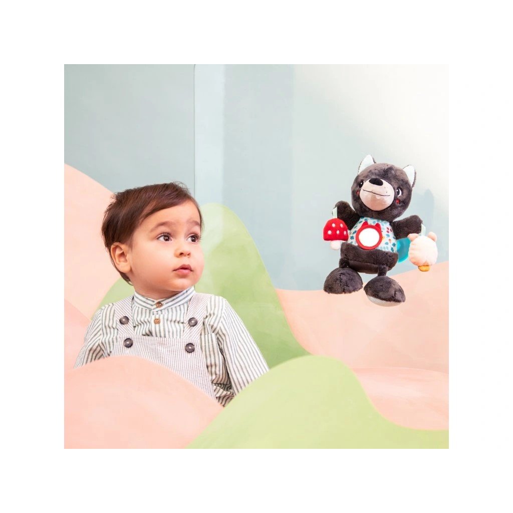 Plánujete výlet autem a potřebujete zabavit děti? Plyšová hračka vlk Ludvík díky přísavce přilne k oknu auta, vlaku nebo letadla, aniž by spadla. Nabízí řadu aktivit, včetně zvuků a textur a odrazů světla, které zabaví dítě během cesty. Hračka rozvíjí jemnou motoriku a smysly. Určeno pro děti od 6 měsíců.