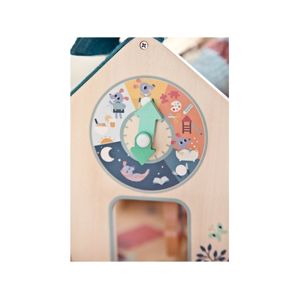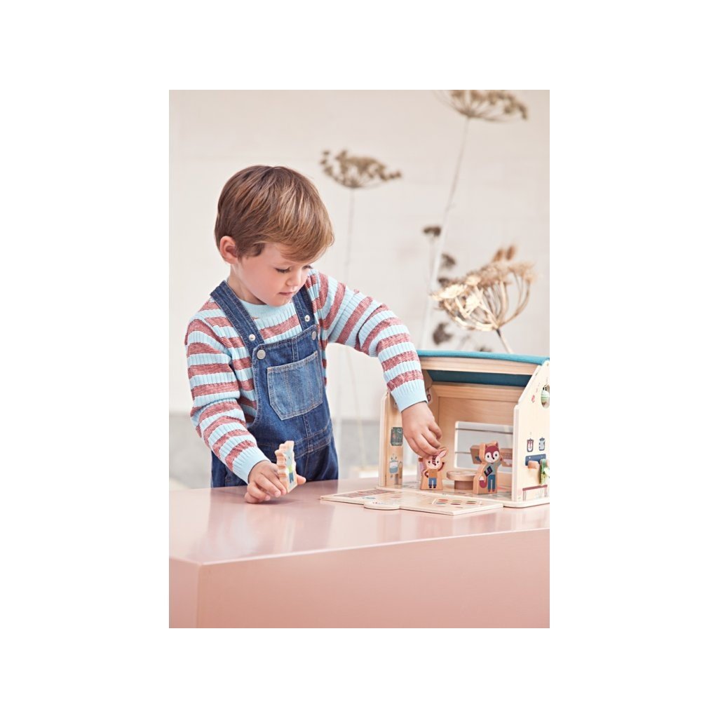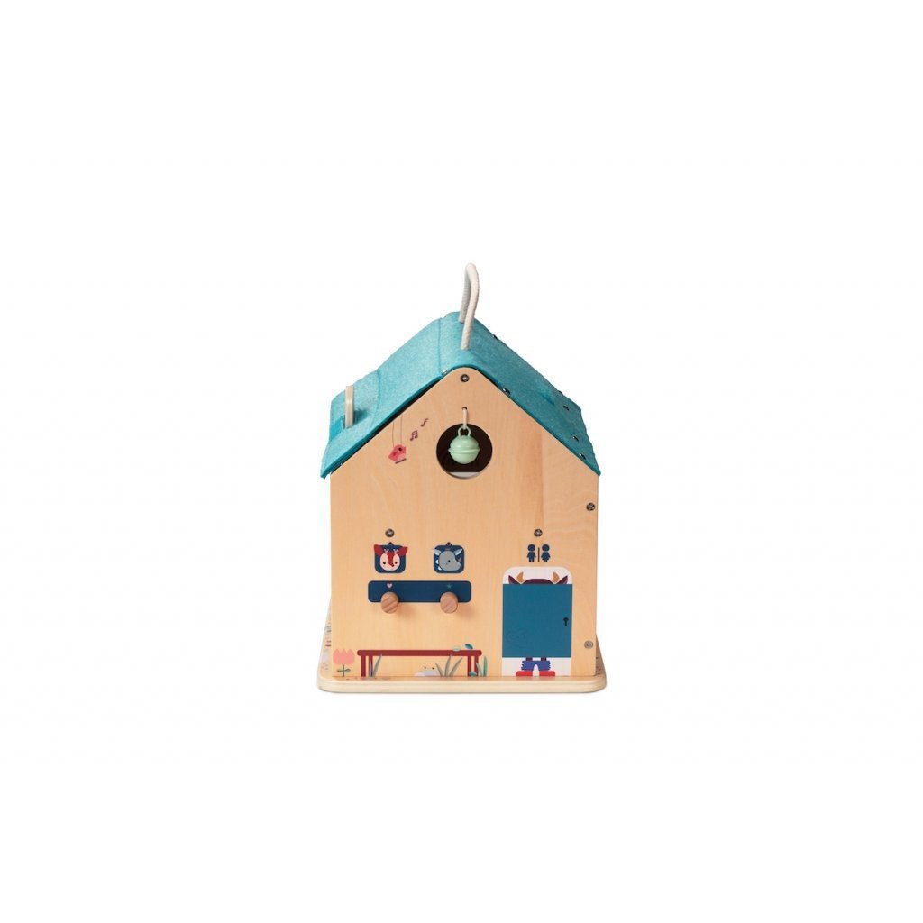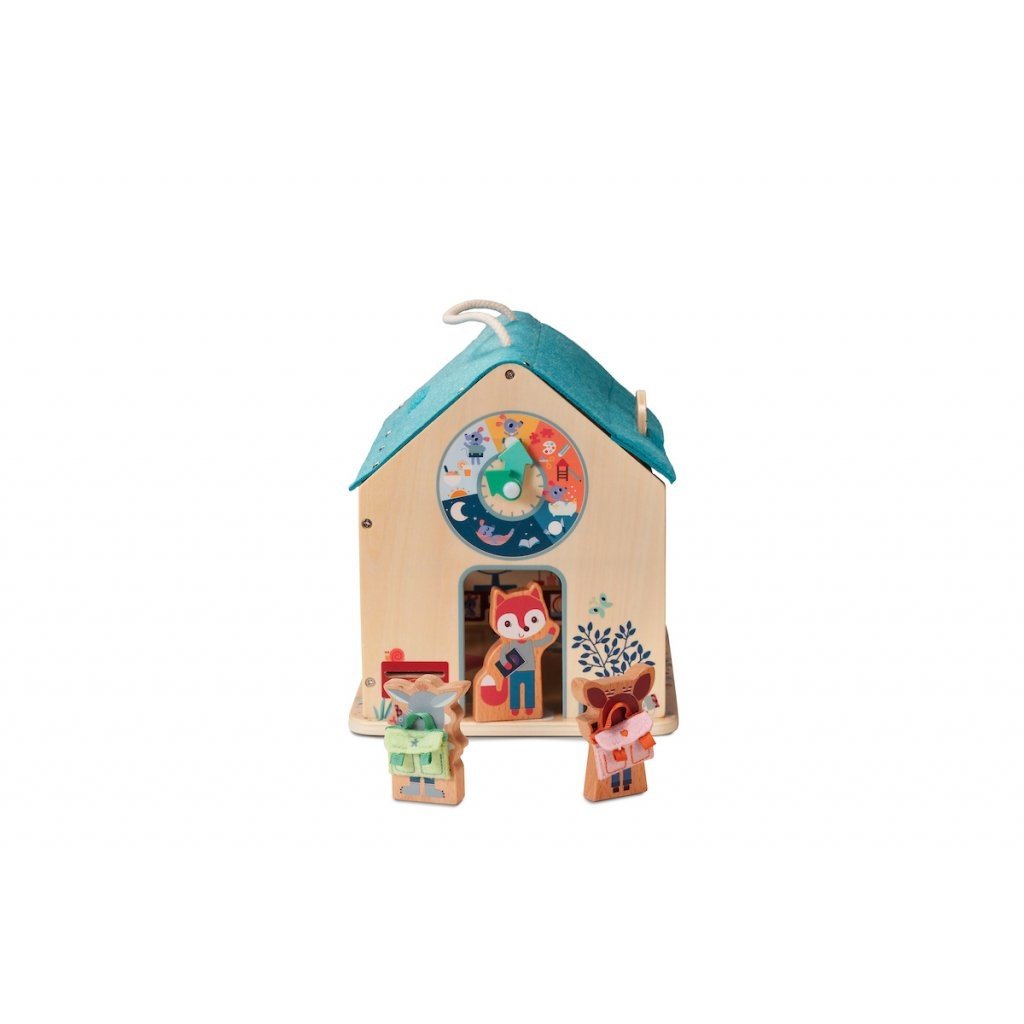 Moje první škola je dřevěná hračka pro děti od 2 let, se kterou mohou vymýšlet skvělé školní příběhy podle své fantazie. Cink, cink, zvonek zvoní, přestávka končí, je čas vrátit se do třídy za paní učitelkou. Co nového se dnes asi naučíme? Tato hra s představivostí nabízí mnoho aktivit: počítadlo, věšák na zavěšení školních tašek, odnímatelný panel pro přístup do interiéru školy, zvonek, hodiny... Vysoce kvalitní hračka, která umožňuje dívkám a chlapcům připravit se na vstup do školy a rozvíjet jejich fantazii. Po odkrytí střechy se stevře třída plná překvapení a her.