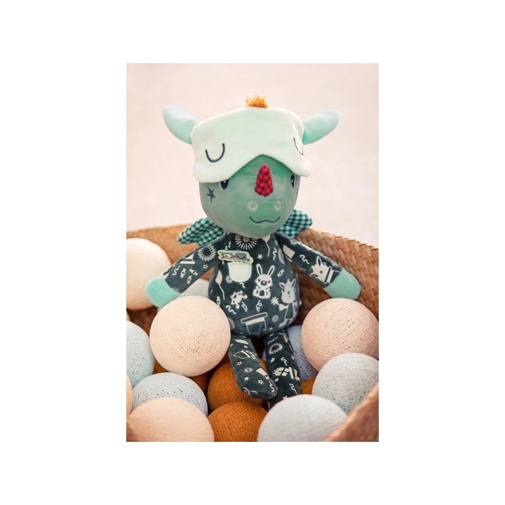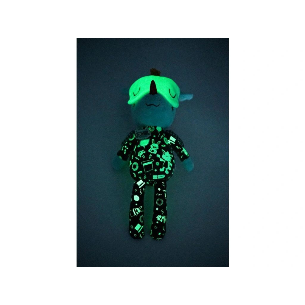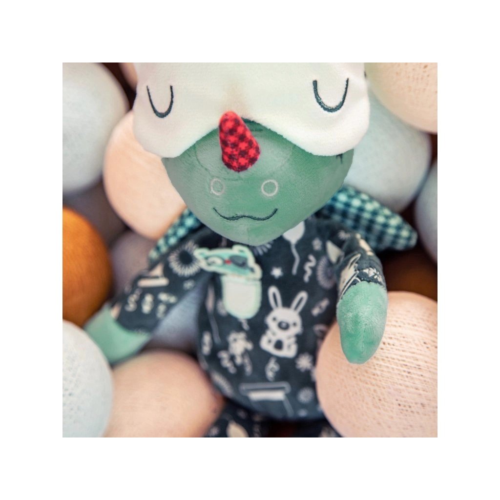 Společník do postýlky pro vaše děti od 6 měsíců. Se svým kamarádem Joem bude mít vaše ratolest pouze ty nejsladší sny. Dráček Joe má na sobě kouzelné pyžamo s maskou na spaní, které ve tmě svítí. Jemné světlo uvolňuje stres a působí příznivě na zklidnění dětí v postýlce. Hračku je potřeba nejprve nasvítit na světle.