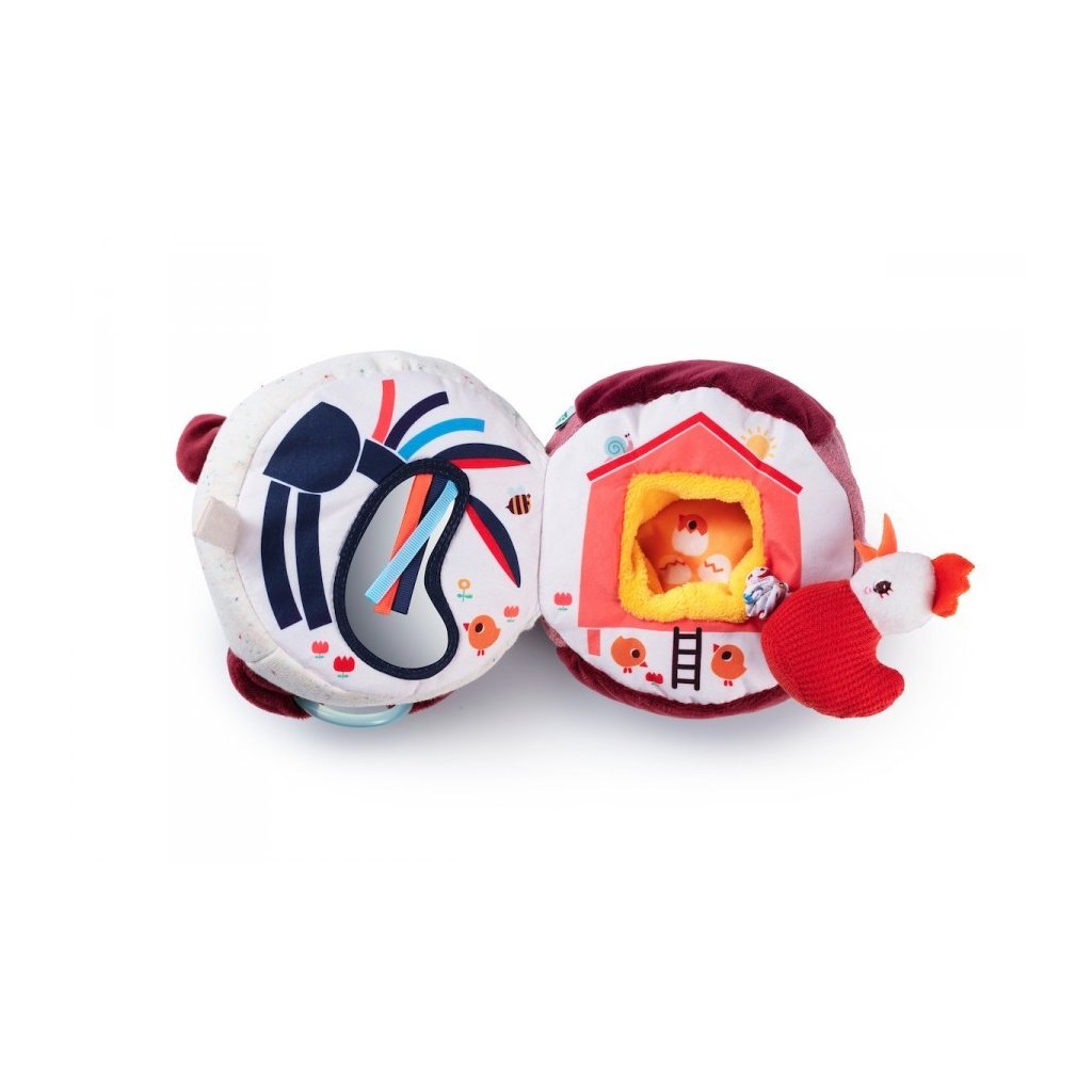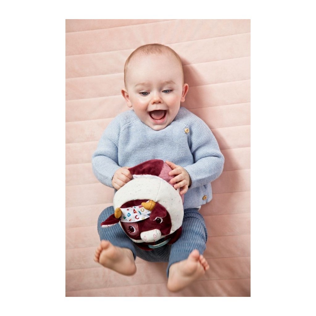 Hračka pro zvídavé děti od 9 měsíců. Barvy, materiály, zvuky a další aktivity stimulují dětské smysly. Pokud děti jemně zatlačí na čumáček, kravička Rosalie zabučí. Uvnitř kravičky se schovává vibrující slepička v kurníku a zrcátko. Hračka učí děti pochopit spojení akce a reakce.