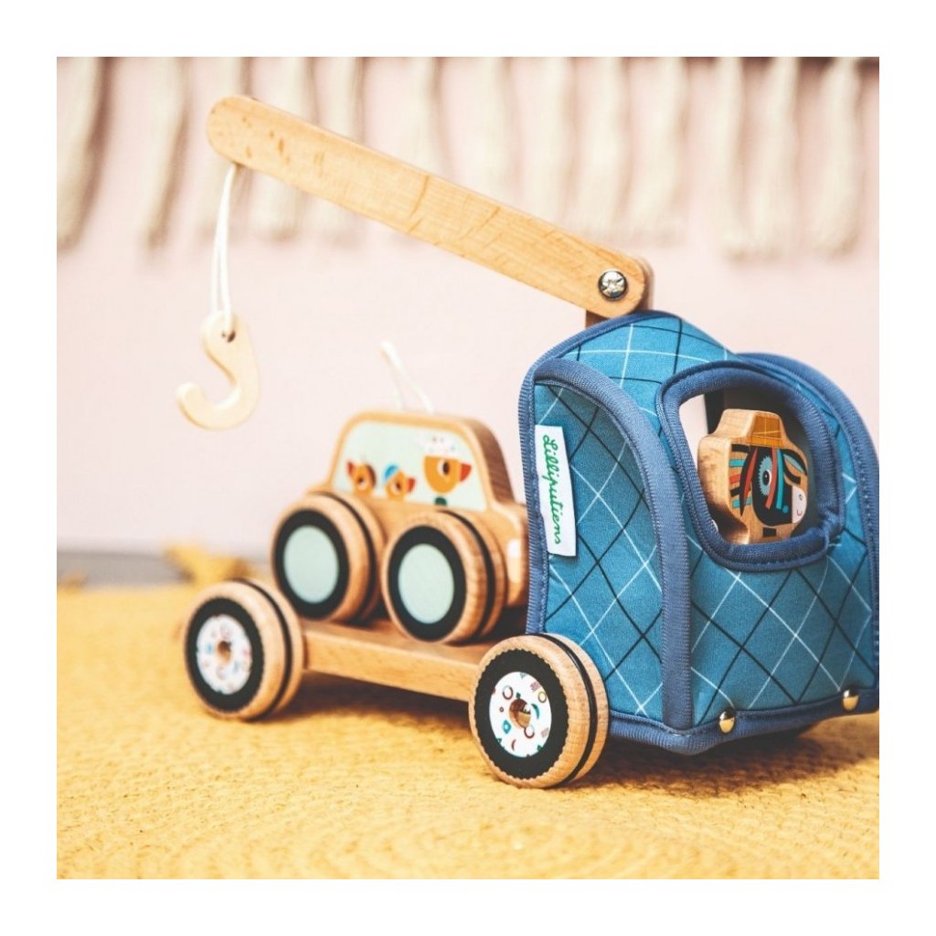 Krásný dřevěný odtahový vůz pro kluky od 2 let. Malé káčátko Gaspard má problémy se svým autem. Ale nemusí se bát. Co nevidět přifrčí oslík Ignác se svým odtahovým vozem a odveze auto do servisu. Gaspard už si může vydechnout. Je doma i se svým opraveným autíčkem. Zato oslík Ignác už je na cestě k dalšímu autu, které potřebuje do servisu. S tímto odtahovým vozidlem si děti mohou vymýšlet ty nejbláznivější dobrodružství.