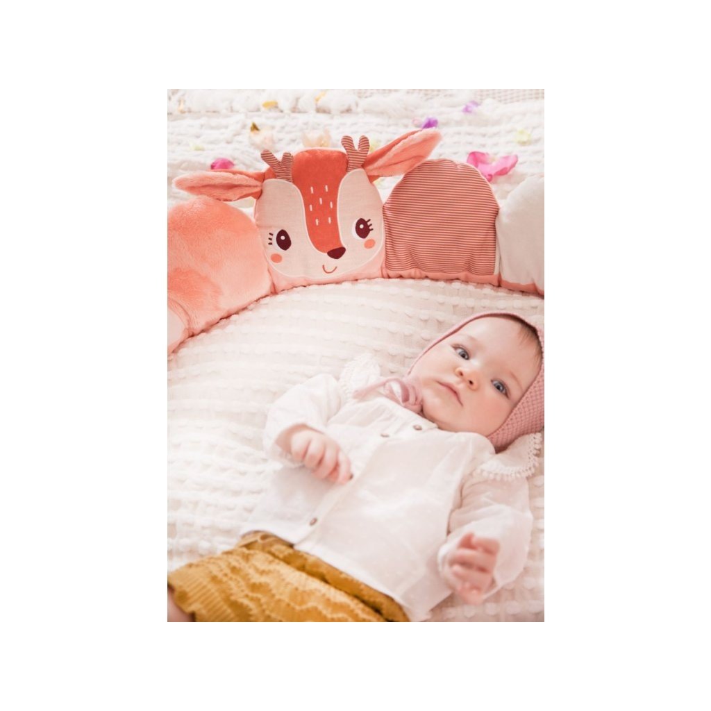 Zavinovací textilní ohrádka, která vytvoří příjemné prostředí a pocit bezpečí v postýlce pro každé miminko. Řada malých polštářků spojených dohromady tvoří ochranné hnízdo. Ideální dárek k narození holčičky i chlapce. Jelínek Stella není jen pohodlný polštář k odpočinku do postýlky, který doprovází vaše miminko od narození. Díky mnoha činnostem povzbuzuje batolata k objevování a dokáže je pobavit a zaujmout (textury, zrcátko, zašité chrastítko, šustění papíru).