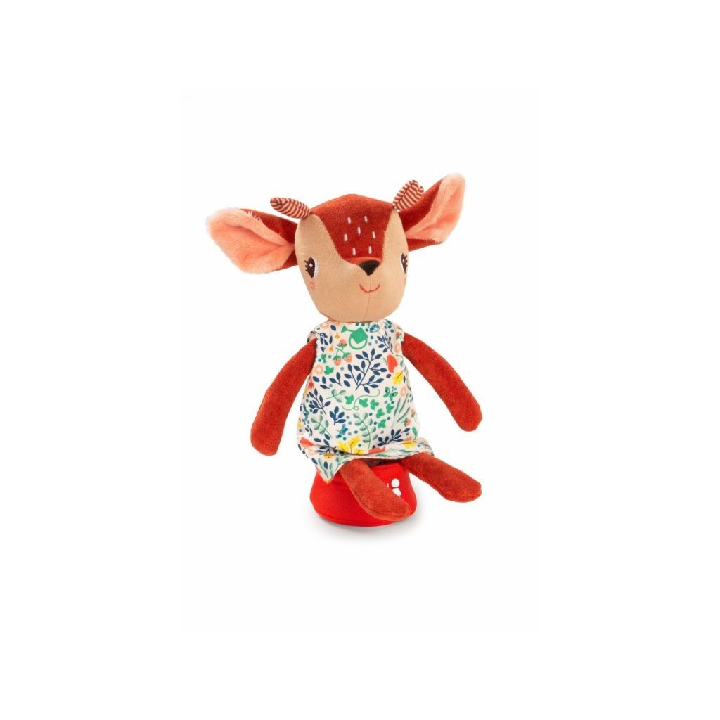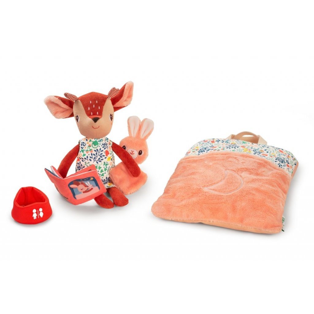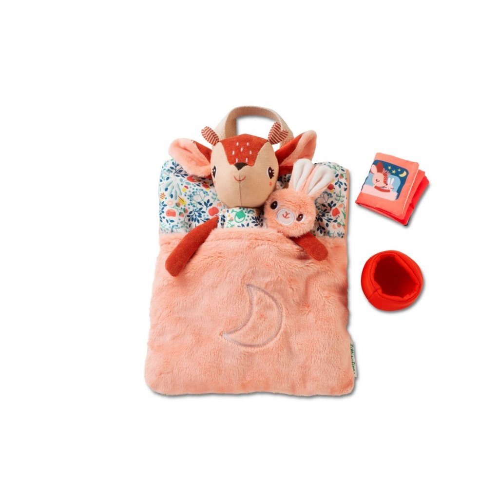 Čas jít spát! Naučte děti večerní rutinu hravým způsobem s nápaditým usínacím plyšákem. Děti rády napodobují co vidí. Pomůžete jelínkovi Stelle připravit se do postýlky na spinkání? Nejprve půjde na nočník, pak si oblékne pyžamo a plenku a nakonec se společně se svým plyšákem zachumlá do měkké postýlky. Po večerní pohádce zhasne světlo a zavřou se oči. Jelínek ve chvilce spí, jako když ho do vody hodí. Fosforeskující hvězda na jeho postýlce poskytuje klidné noční světlo.