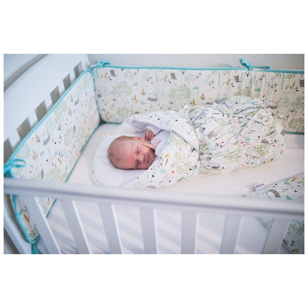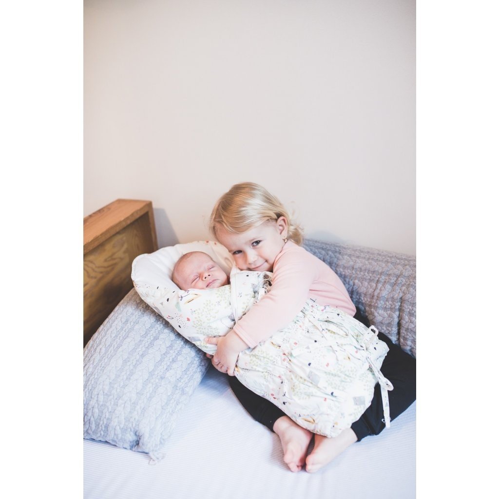 Zavinovačka na šněrování s pevnými zády je vhodná pro první dny a měsíce vašeho miminka. Miminko se ve vhodně zašněrované zavinovačce cítí bezpečněji, připomíná mu pocit u maminky v bříšku, lépe usíná, je klidnější a spokojenější. Díky vyjímatelným pevným zádům bude manipulace s miminkem snazší pro tatínky, babičky nebo starší sourozence. Zavinovačka je ze 100% bavlny, polyesterového rouna (které lze jednoduše vyjmout, což umožní její použití také v horkém létě) a termoregulační tkaniny Outlast®. Outlast® odebere přebytečné teplo, když se miminko zahřeje a omezí tím pocení až o 40%. Teplo vrátí při ochlazení a miminku nebude zima. Povlak je na vrchní straně z barevné potištěné bavlny, vnitřní strana je z bílého bavlněného saténu. Povlak zavinovačky můžete prát samostatně bez výplně z rouna a výztuže z molitanu. Na vnitřní straně zavinovačky je pro zpevnění zad našita kapsa s molitanovou výztuží, kterou lze kdykoli jednoduše vyjmout. Po stranách jsou našita "křídla" se třemi vázačkami v tunýlcích na stažení. Rozložená zavinovačka má tvar čtverce o velikosti.