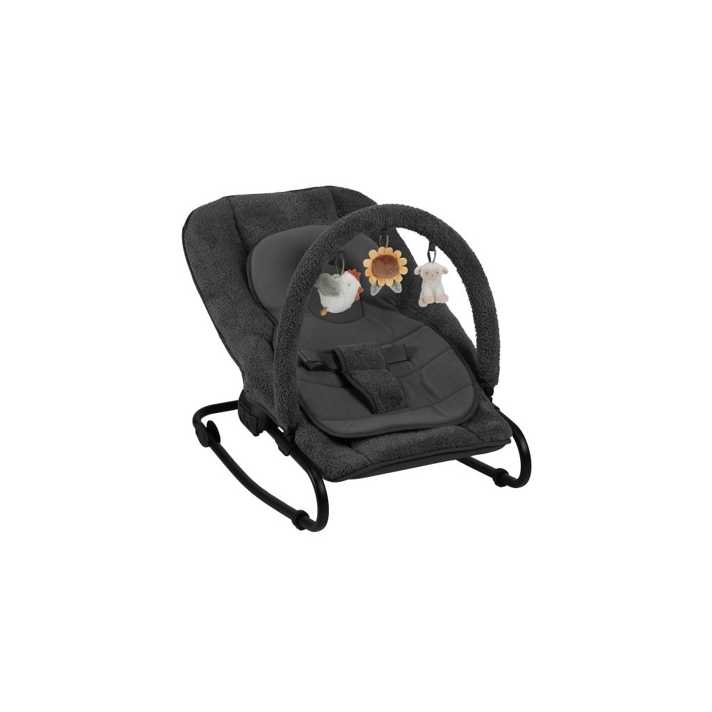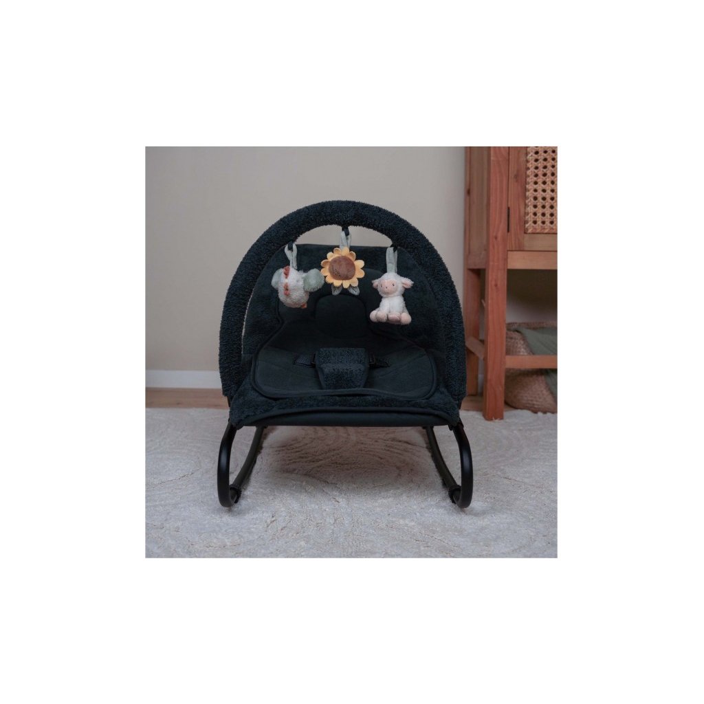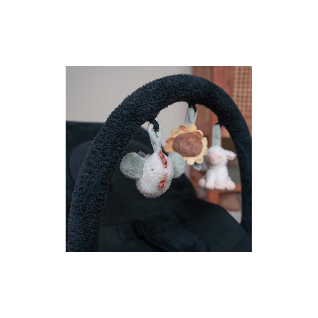 Houpací lehátko Little Dutch s hrazdou poskytne vašemu dítě pohodlné místo k odpočinku i hraní. Pozornost dítěte upoutají tři zavěšené plyšové hračky v podobě slepičky, kytičky a ovečky.