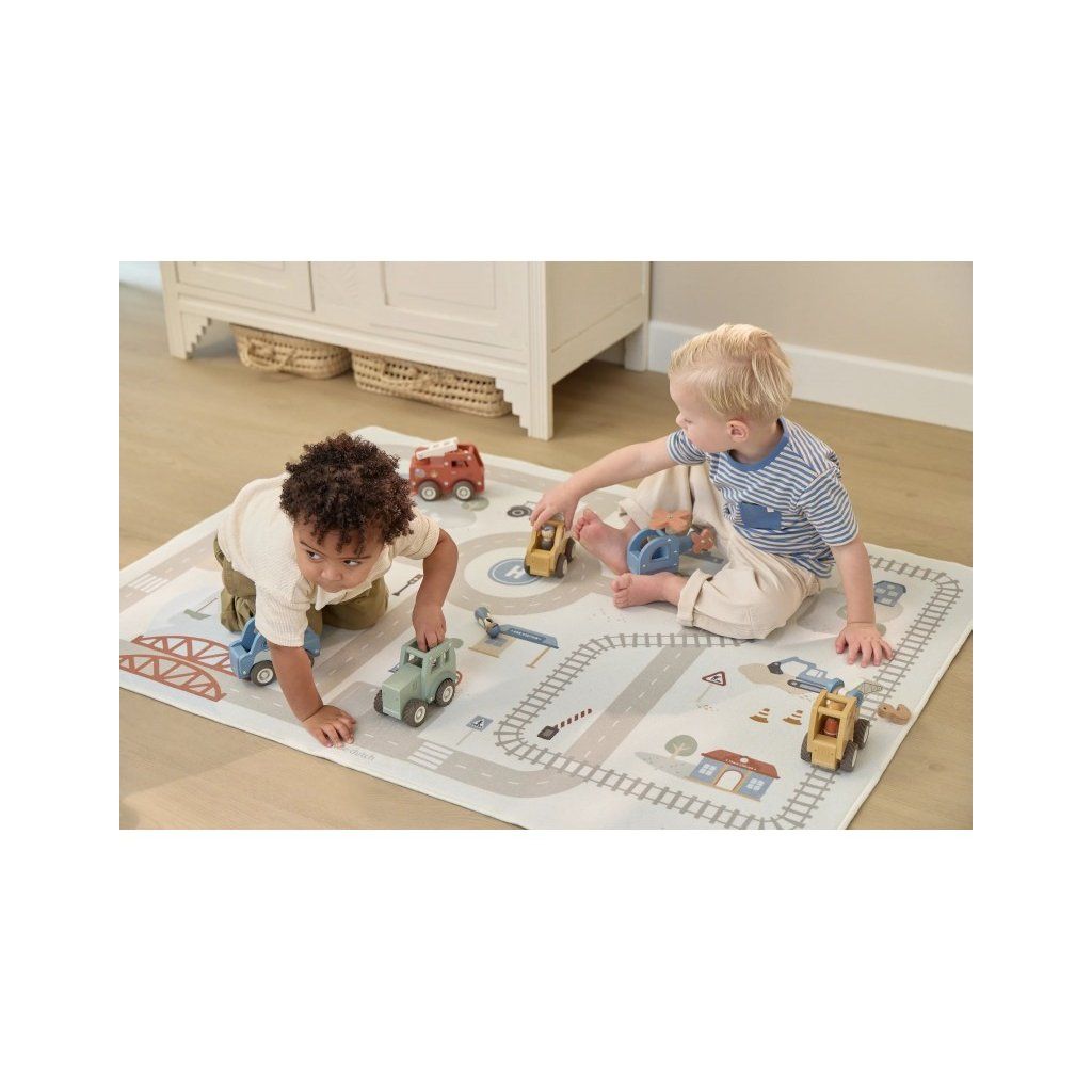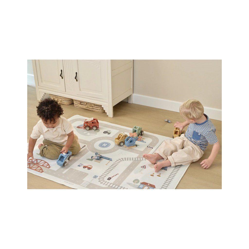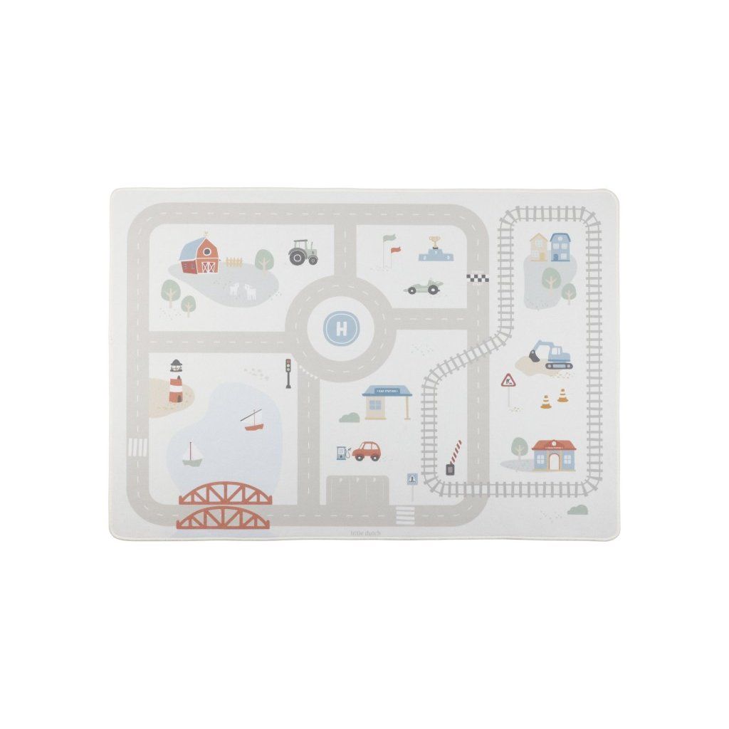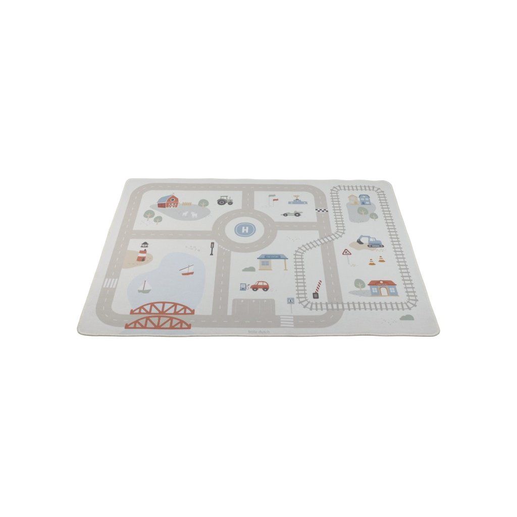 Dětský koberec Little Dutch promění podlahu v dětském pokoji v živý svět plný silnic, zatáček a křižovatek, kde se příběhy tvoří samy. Děti mohou parkovat auta do garáže, projíždět městem nebo se vydat na cestu vlakem – design koberce je přirozeně vede a podporuje fantazii i soustředěnou hru. Koberec bude skvělým doplňkem při hraní s autíčky, vláčky, stavebnicemi nebo dalšími hračkami. Koberec s měkkým povrchem v jemných pastelových barvách nabízí pohodlné a bezpečné místo pro hraní a bude i krásným doplňkem do dětského pokoje. Díky protiskluzové vrstvě dobře drží na podlaze a podporuje i motorický rozvoj dítěte.