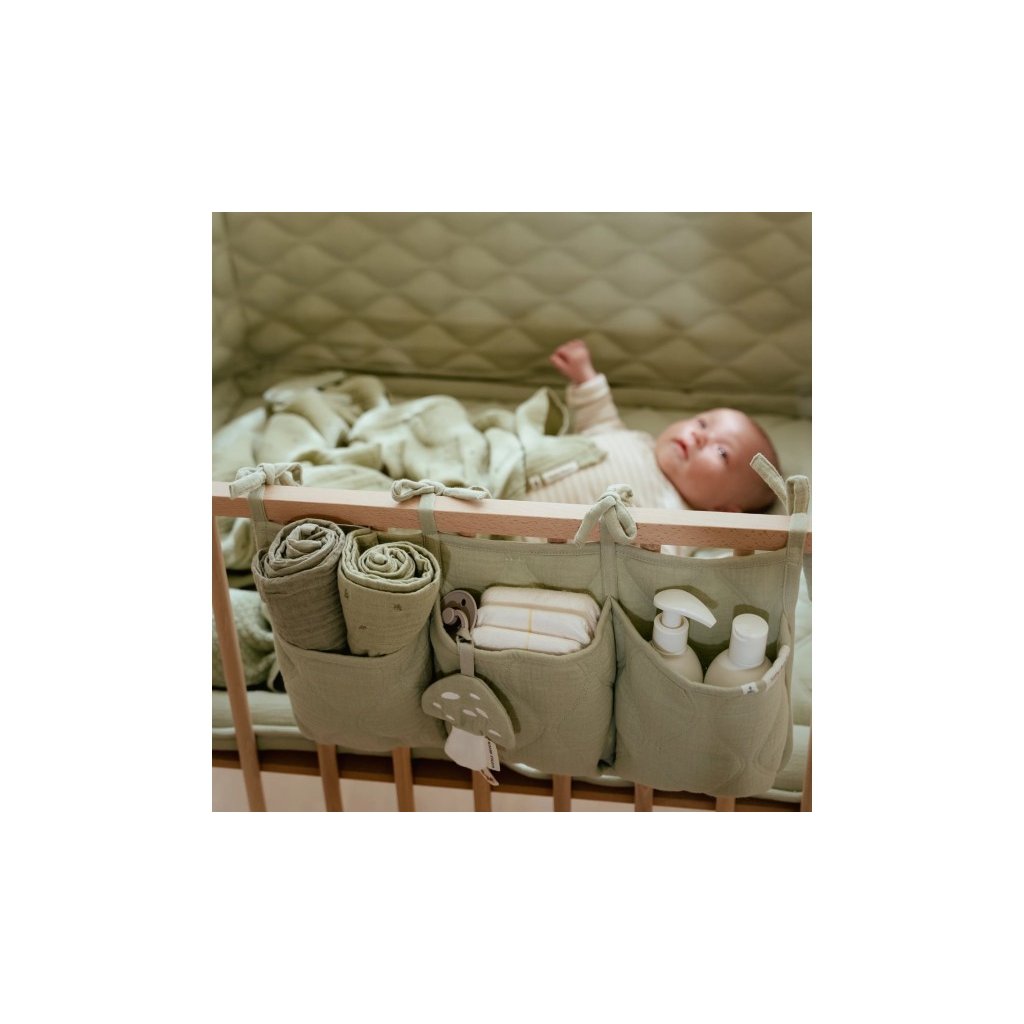 Praktický závěsný organizér v krásném provedení s ozdobným prošíváním vám umožní mít vše potřebné pro péči o vaše miminko vždy po ruce. Organizér ze 100% organické bavlny nabízí tři prostorné kapsy pro uložení dudlíků, bryndáčků, plen, ubrousků, hraček apod. Pomocí praktických vázacích šňůrek jej snadno připevníte k přebalovacímu pultu, na stěnu či na postýlku. Organizér je součástí designové kolekce textilu a doplňků Little Dutch Pure.