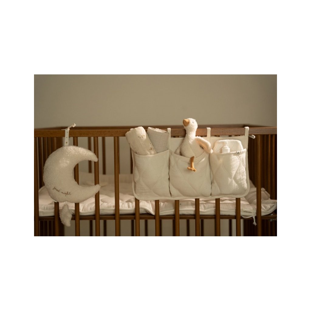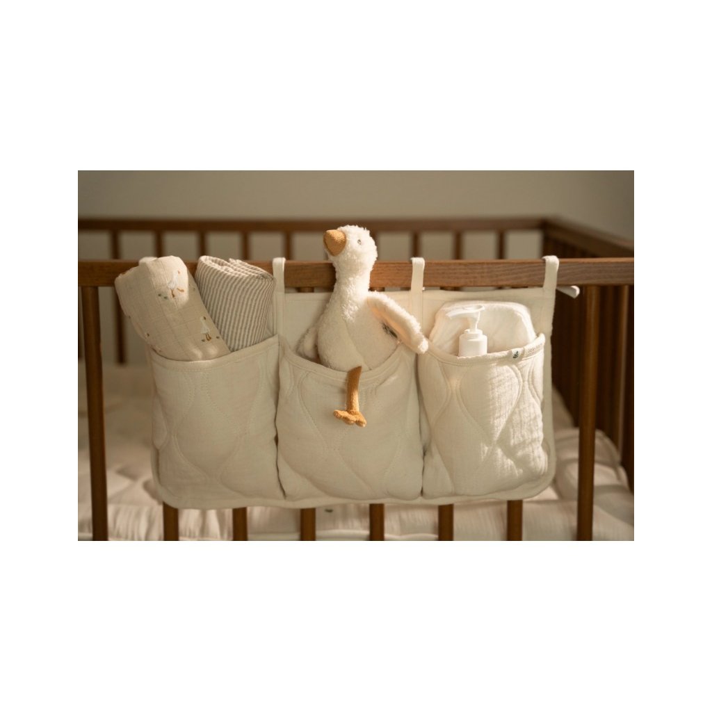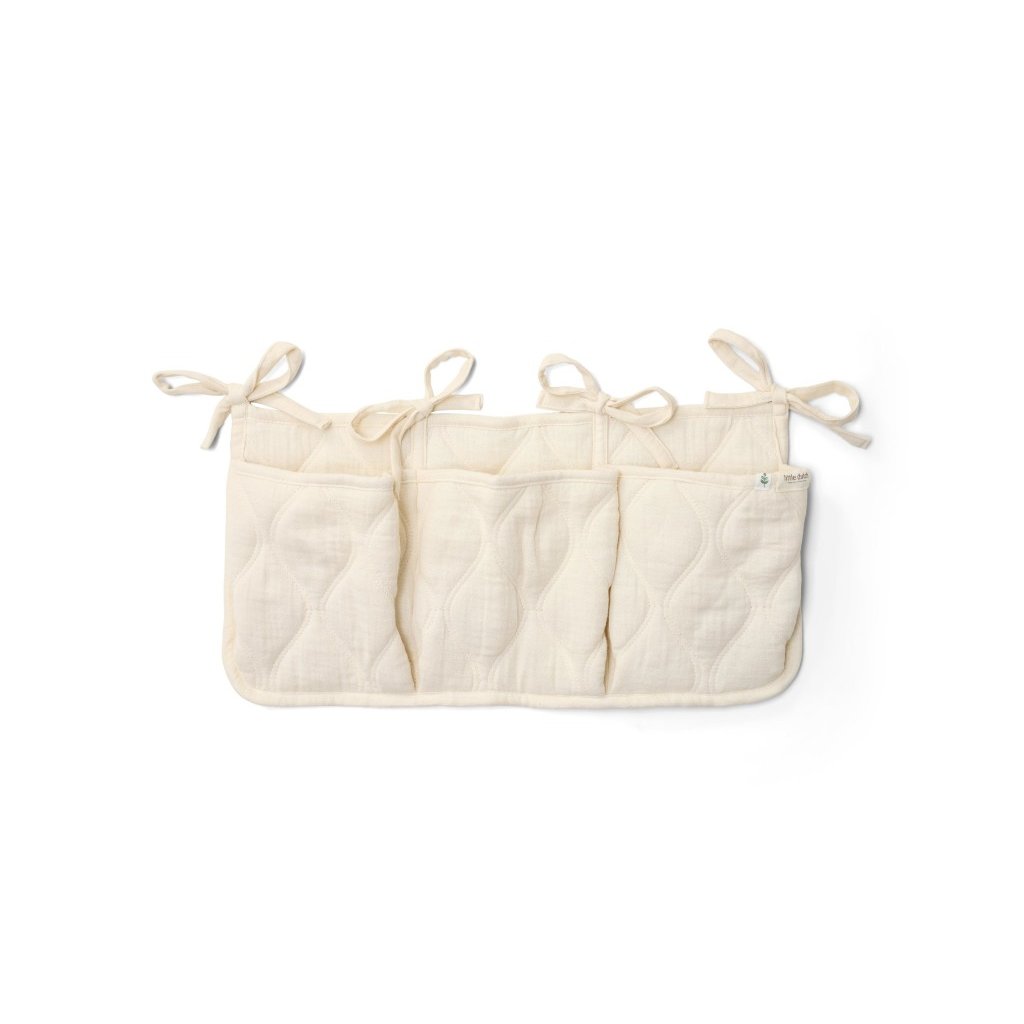 Praktický závěsný organizér v krásném provedení s ozdobným prošíváním vám umožní mít vše potřebné pro péči o vaše miminko vždy po ruce. Organizér ze 100% organické bavlny nabízí tři prostorné kapsy pro uložení dudlíků, bryndáčků, plen, ubrousků, hraček apod. Pomocí praktických vázacích šňůrek jej snadno připevníte k přebalovacímu pultu, na stěnu či na postýlku. Organizér je součástí designové kolekce textilu a doplňků Little Dutch Pure.