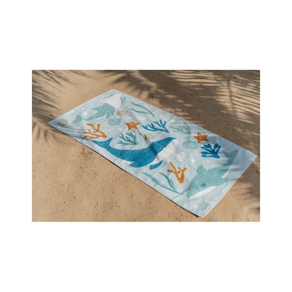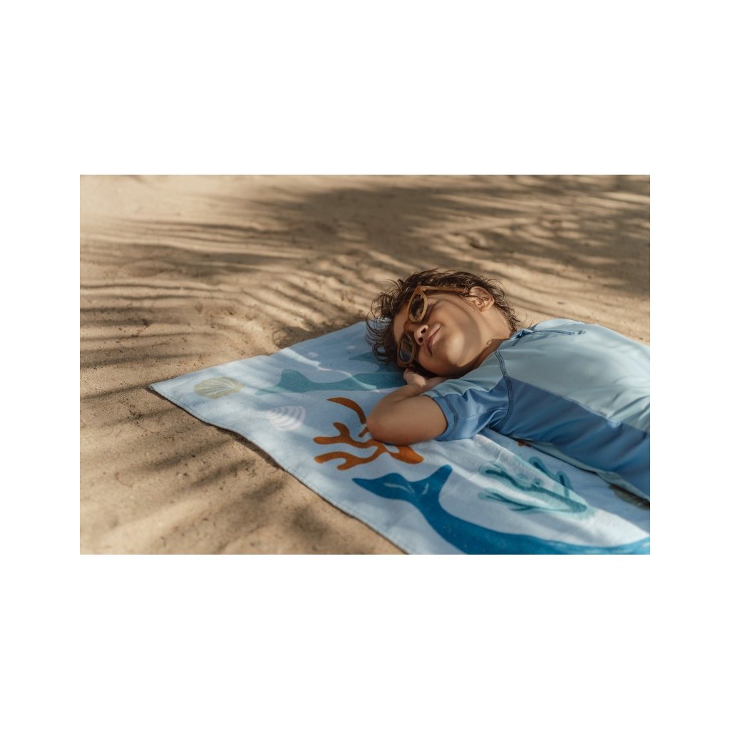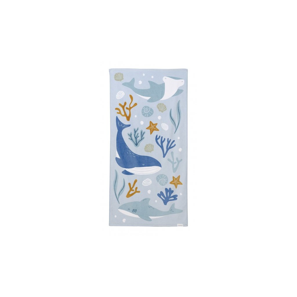 Měkká froté osuška je ideální pro snadné a rychlé osušení dítěte po koupeli doma, v bazénu či na pláži u moře. Osuška je součástí designové kolekce Little Dutch Ocean Dreams Blue.