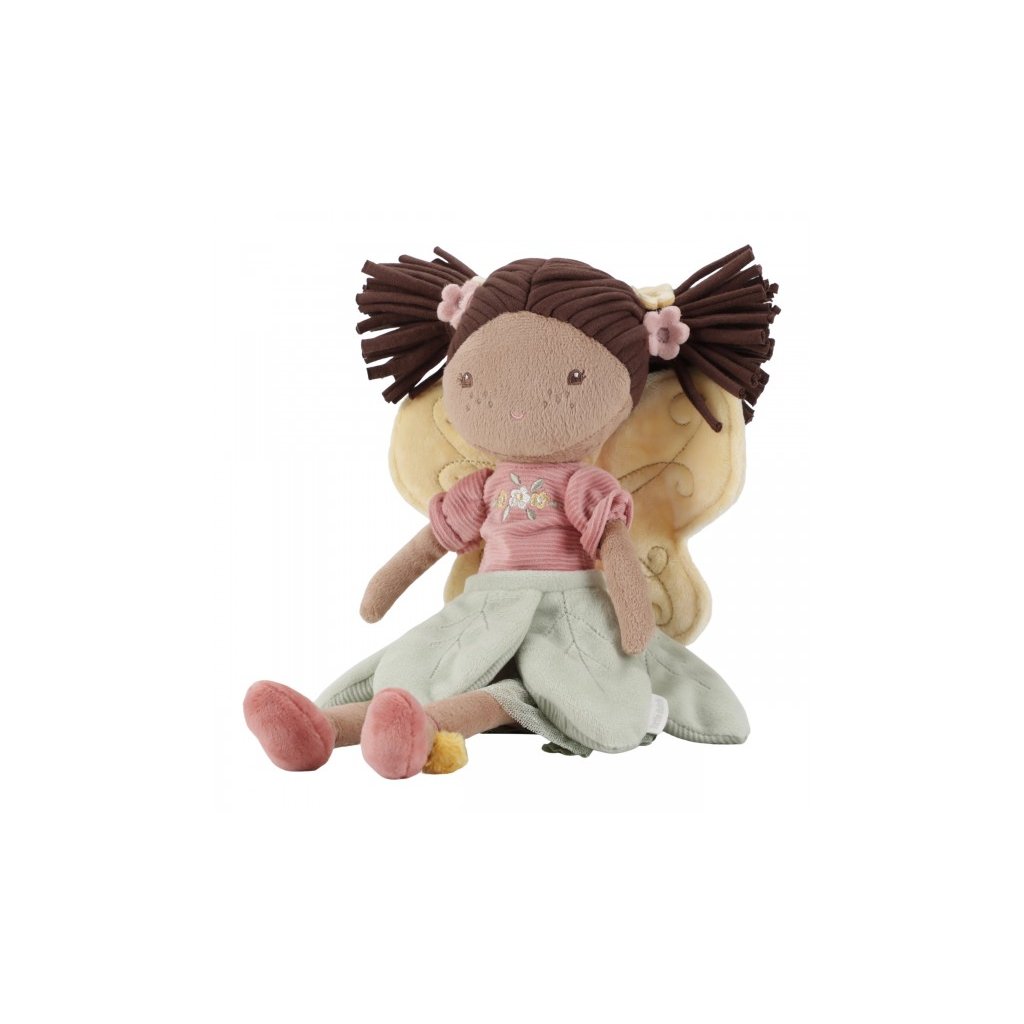 Z kouzelné květinové zahrady k vám domů přichází neodolatelná víla Evi! Panenka z jemnoho měkkého materiálu s křídly a krásnými šaty je vhodná na hraní i mazlení a bude se s ní i krásně usínat! Výplň je vyrobena ze 100% recyklovaného polyesteru s certifikací GRS (Global Recycled Standard).