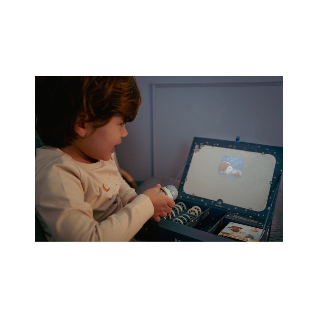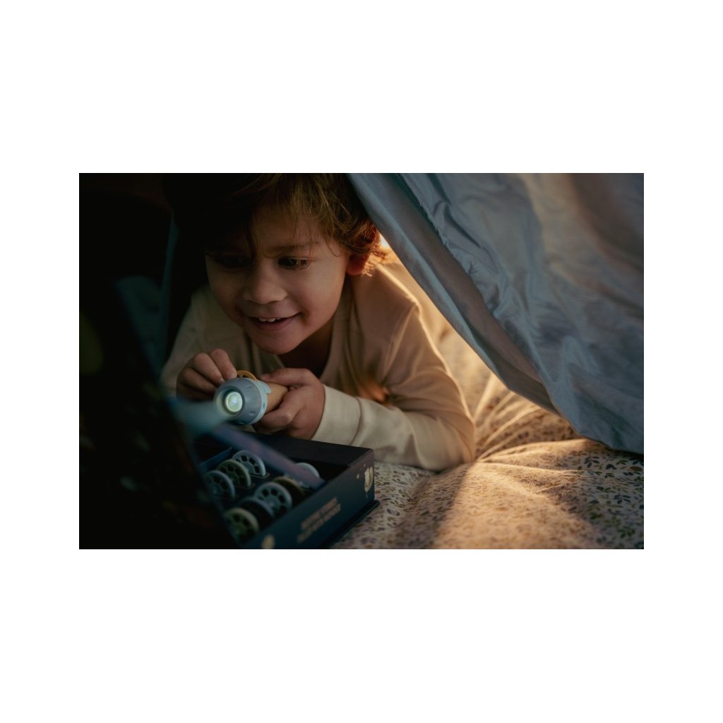Přineste dětem kouzlo pohádkových příběhů s tímto jedinečným projektorem ve tvaru baterky! Sada obsahuje 12 promítacích kotoučků, z nichž každý vypráví svůj vlastní pohádkový příběh prostřednictvím nádherných ilustrací, které se promítají na stěnu. Každý příběh je doplněn tematickou knížečkou s ilustracemi, která zážitek ještě umocní. Projektor má pevnou dřevěnou rukojeť a funguje na baterie, takže si jej děti mohou vzít kamkoliv s sebou. Po skončení příběhu lze baterku i veškeré příslušenství snadno uložit do krásného úložného boxu. Ideální pro malé objevitele a milovníky pohádek! Perfektní dárek pro děti, které rády objevují a prožívají pohádky! Baterie 1 x AAA (1.5V) není součástí balení. Vhodné pro děti od 4 let.