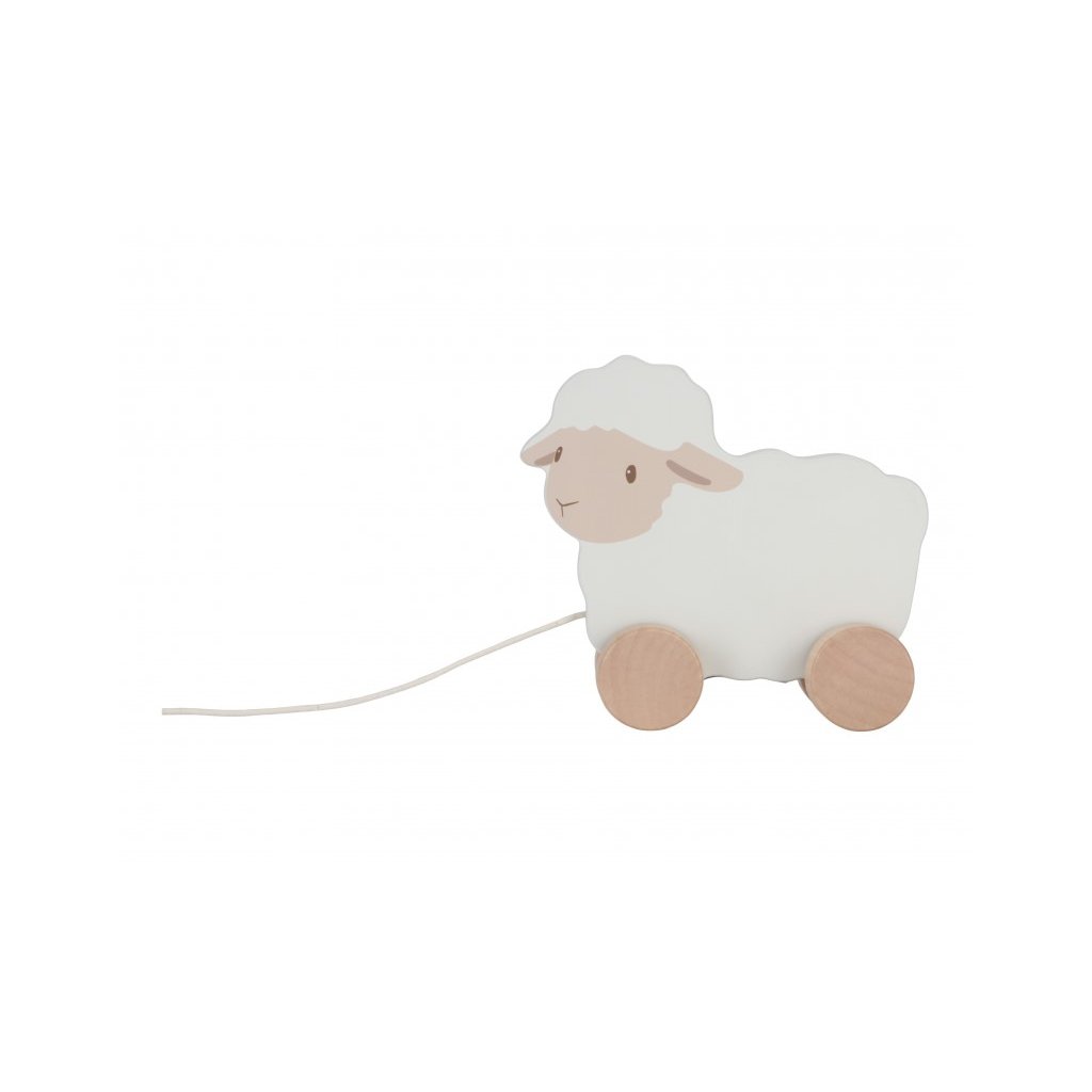 Ovečka na kolečkách v krásném dřevěném provedení má šňůrku, aby ji dítě mohlo tahat za sebou. Hračka je součástí designové kolekce hraček a doplňků Little Dutch Farma.