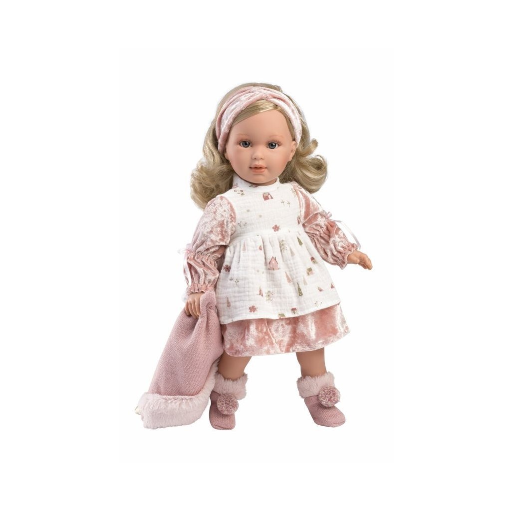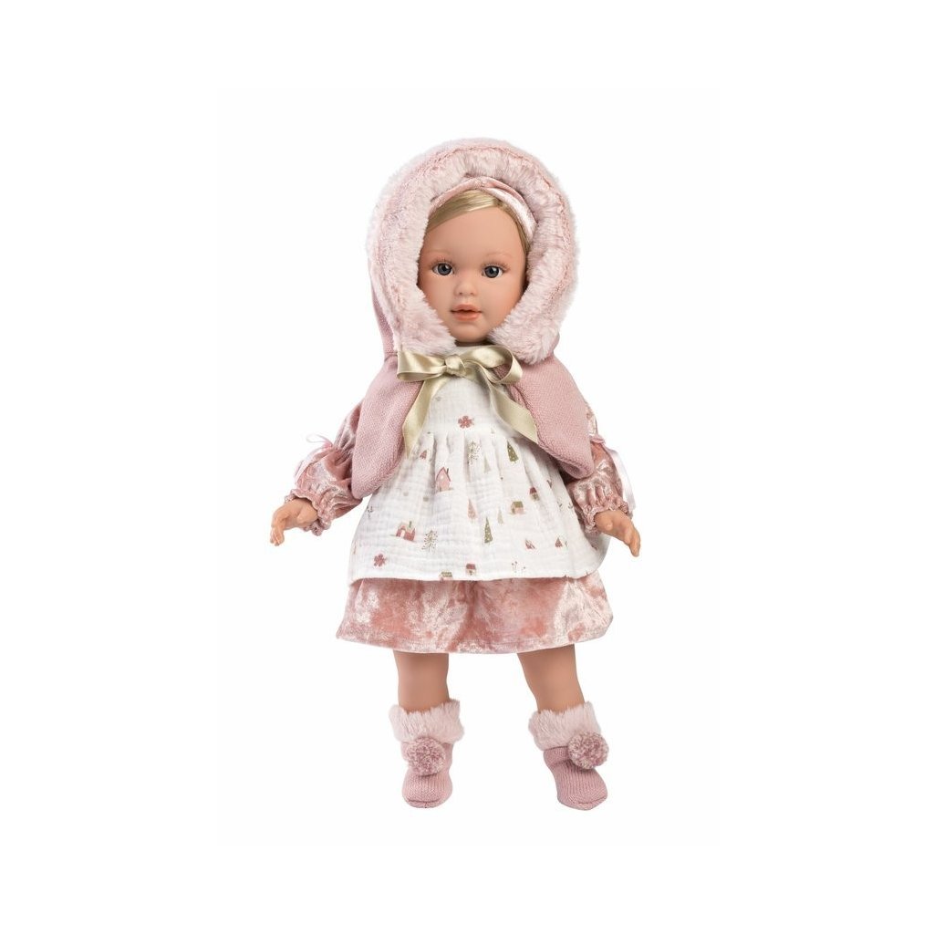 Panenka bez zvuku s měkkým látkovým tělem a s vlásky po celé hlavě, podobající se malé slečně. Velikost 40 cm. Ručně vyrobeno ve Španělsku, baleno v dárkové krabici. Doporučený věk od 3 let.