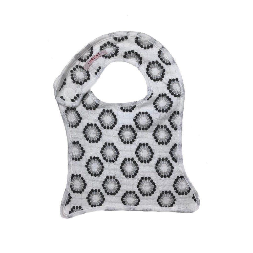 Bibber, jak Lodger nazývá svůj bryndáček a slintáček v jednom, je vyroben ze 100% hydrofilní bavlny, která je krásně měkká a super absorpční. Kromě toho má bryndák promyšlený střih, který skvěle sedí kolem krku dítěte, a tak mu nebude při nošení nepříjemný. Zapíná se na suchý zip. Tentro bryndák má černobílý vzor připomínající květiny.