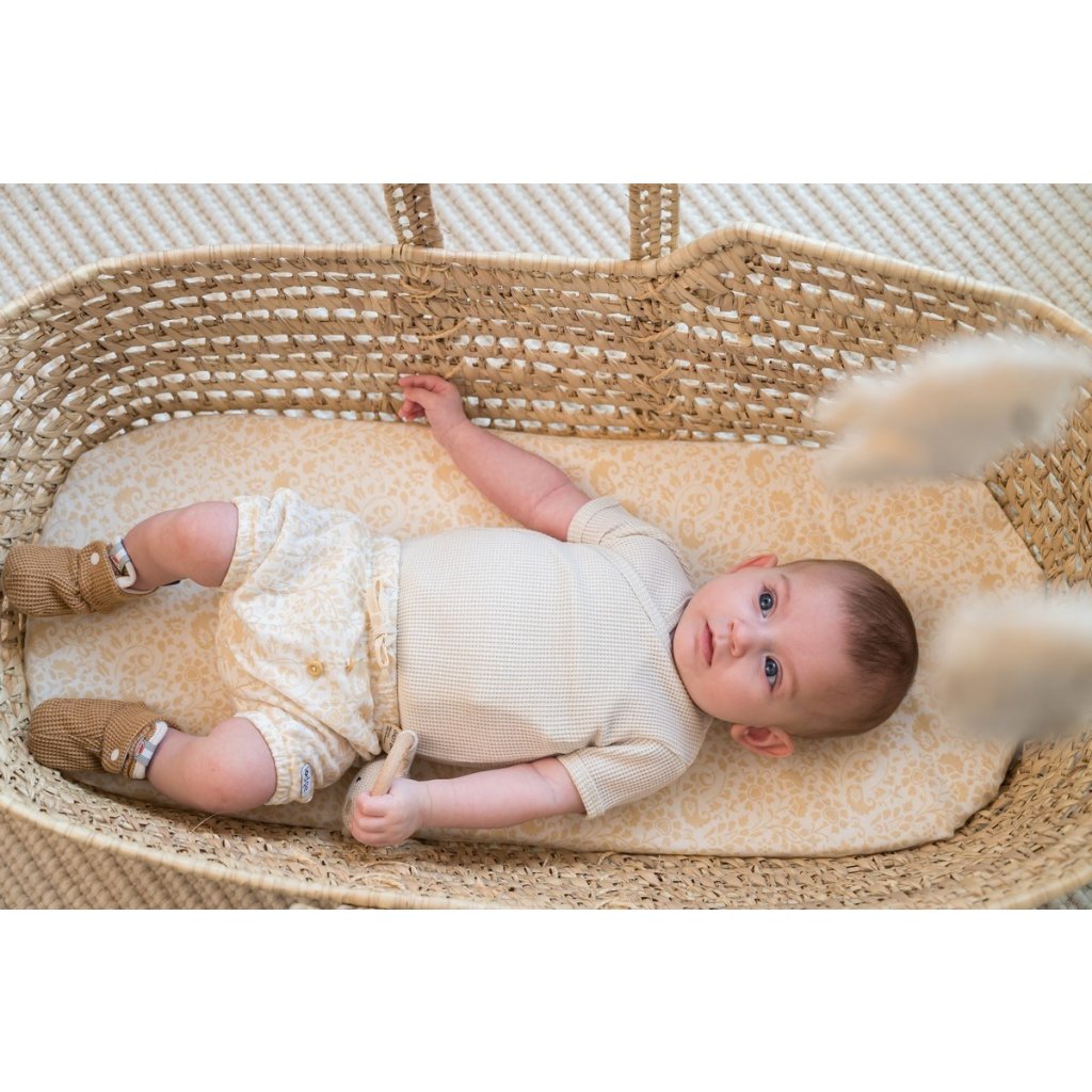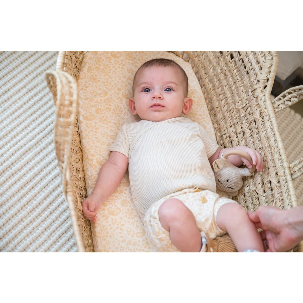 Prodyšné a pohodlné kraťásky vyrobené z bavlněné pleteniny. Díky skvělému střihu nikde netlačí a neškrtí. Lze je použít jako kraťásky na léto, kalhotky přes plenku nebo u holčiček jako doplněk k šatičkám. V pase mají šňůrku, kterou lze kraťásky stáhnout.
