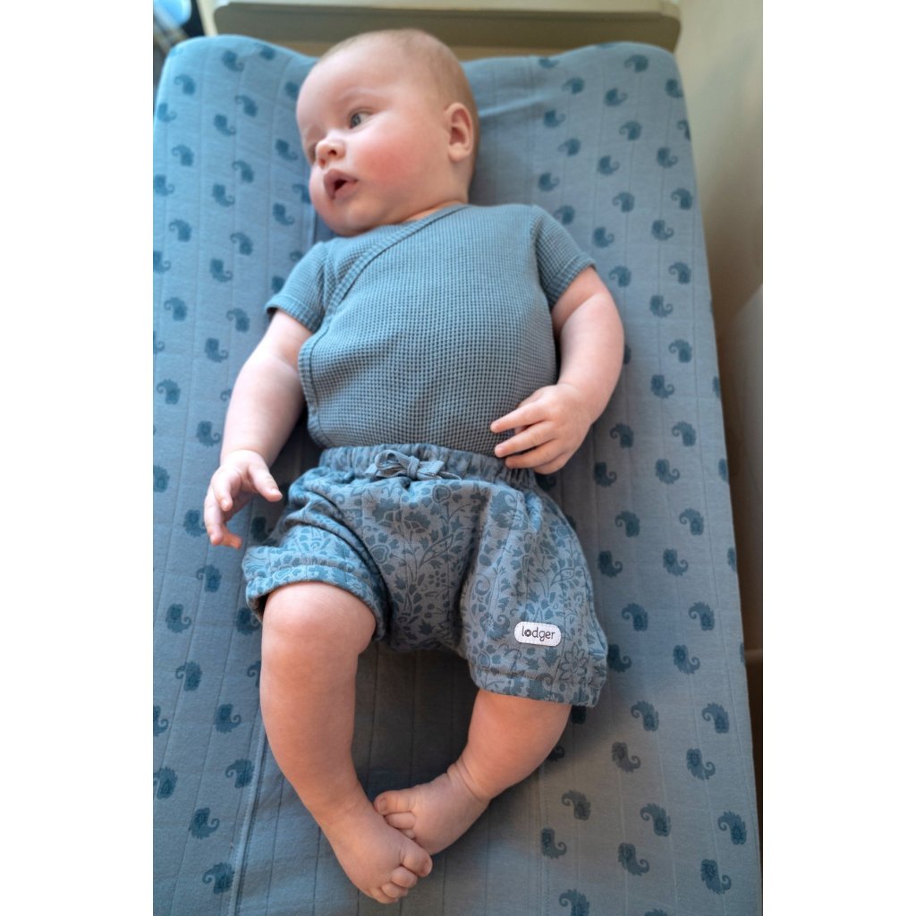 Prodyšné a pohodlné kraťásky vyrobené z bavlněné pleteniny. Díky skvělému střihu nikde netlačí a neškrtí. Lze je použít jako kraťásky na léto, kalhotky přes plenku nebo u holčiček jako doplněk k šatičkám. V pase mají šňůrku, kterou lze kraťásky stáhnout.