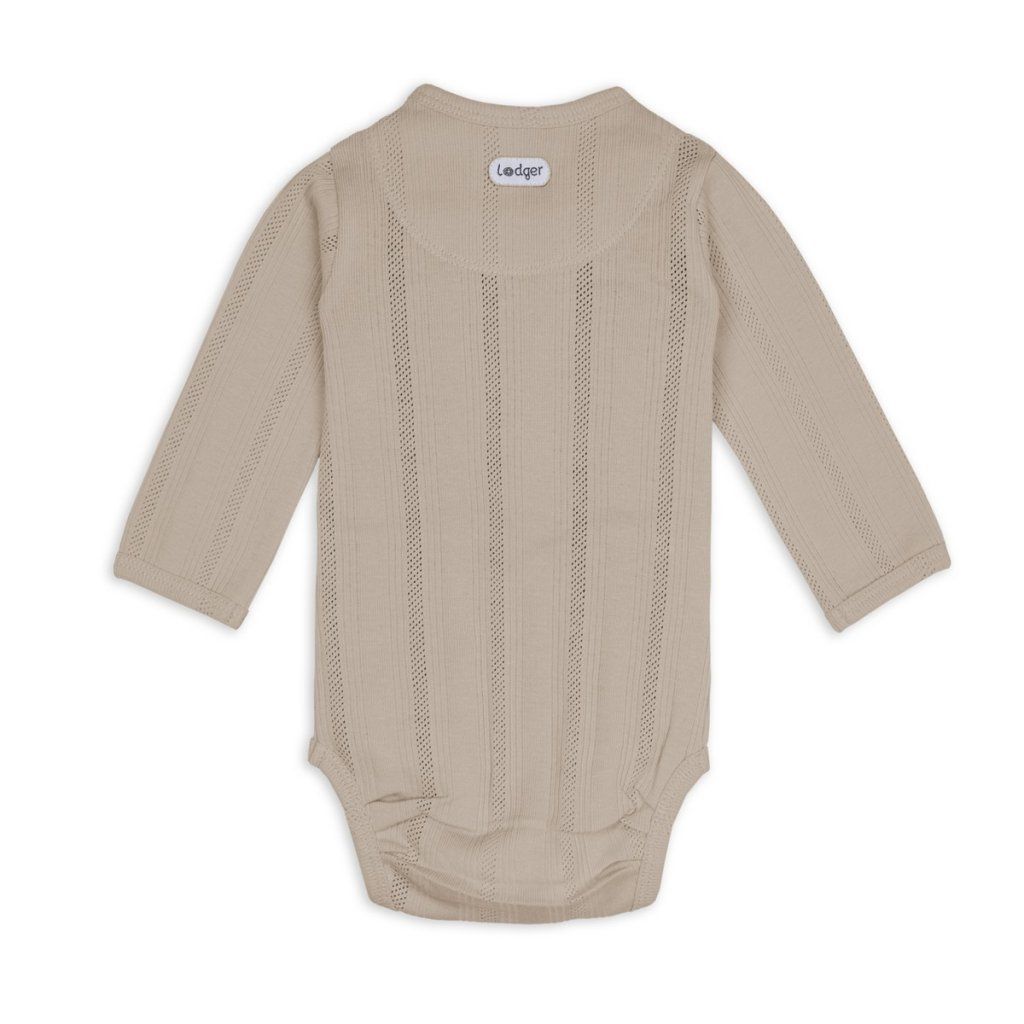Kojenecké body s dlouhým rukávem je navrženo pro každodenní pohodlí a maximální volnost pohybu. Příjemný, prodyšný materiál je šetrný k citlivé dětské pokožce a dodává body moderní vzhled. Má skvělý střih, který dítě neškrtí kolem krku, hrudníku ani ručiček. Kolem nožiček má dodatečné záhyby, a tak nabízí více prostoru pro plenku. Díky zavinovacímu střihu a zapínání na druky se snadno obléká a svléká. Pointelle úplet dodává body jemný, moderní a nadčasový vzhled.