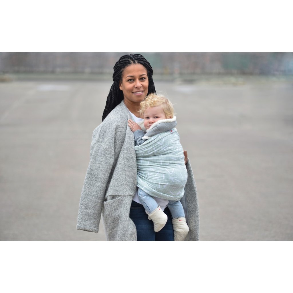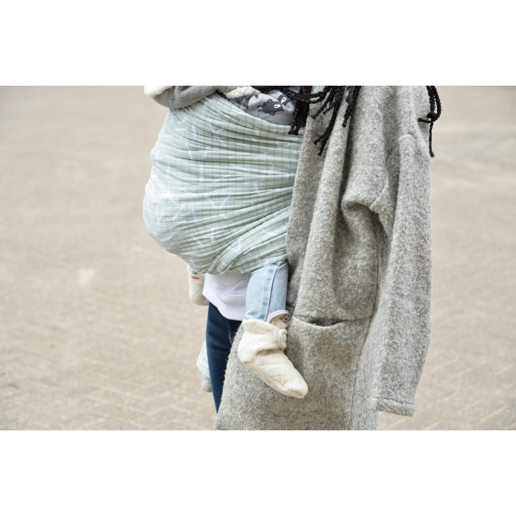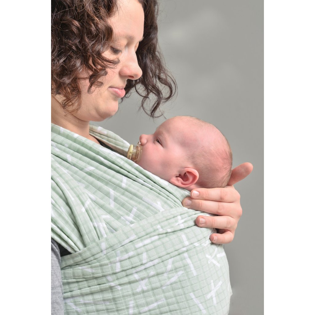 Cocooner, ideální dětské nosítko, které zajišťuje přirozenou a ergonomickou polohu pro vás i vaše dítě. Můžete ho používat od narození až do 1,5 roku věku dítěte (min. 3,5 kg - max. 12 kg), a to pro nošení na břiše, na boku i na zádech. Tento šátek má zelenkavou barvu s bílým vzorem.